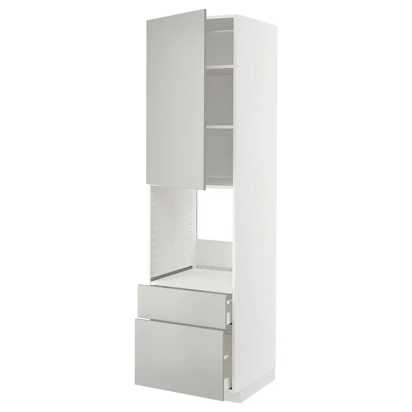 METOD / MAXIMERA High cabinet f oven+door/2 drawers - white/Havstorp light grey 60x60x220 cm