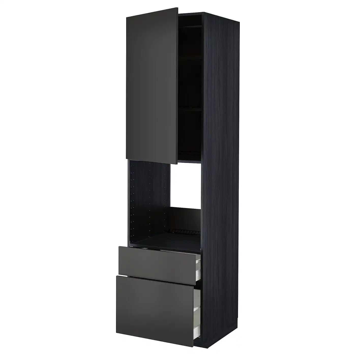 METOD / MAXIMERA High cabinet f oven+door/2 drawers - black/Nickebo matt anthracite 60x60x220 cm