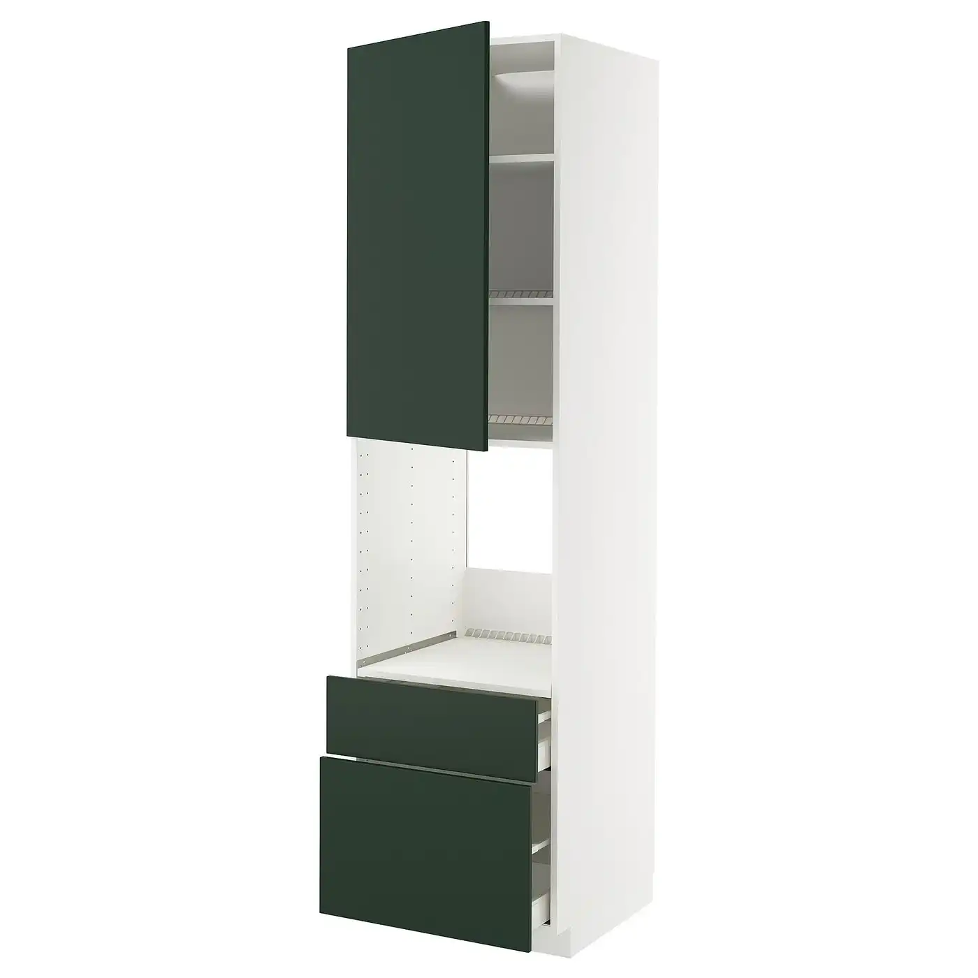 METOD / MAXIMERA High cabinet f oven+door/2 drawers - white/Havstorp deep green 60x60x220 cm