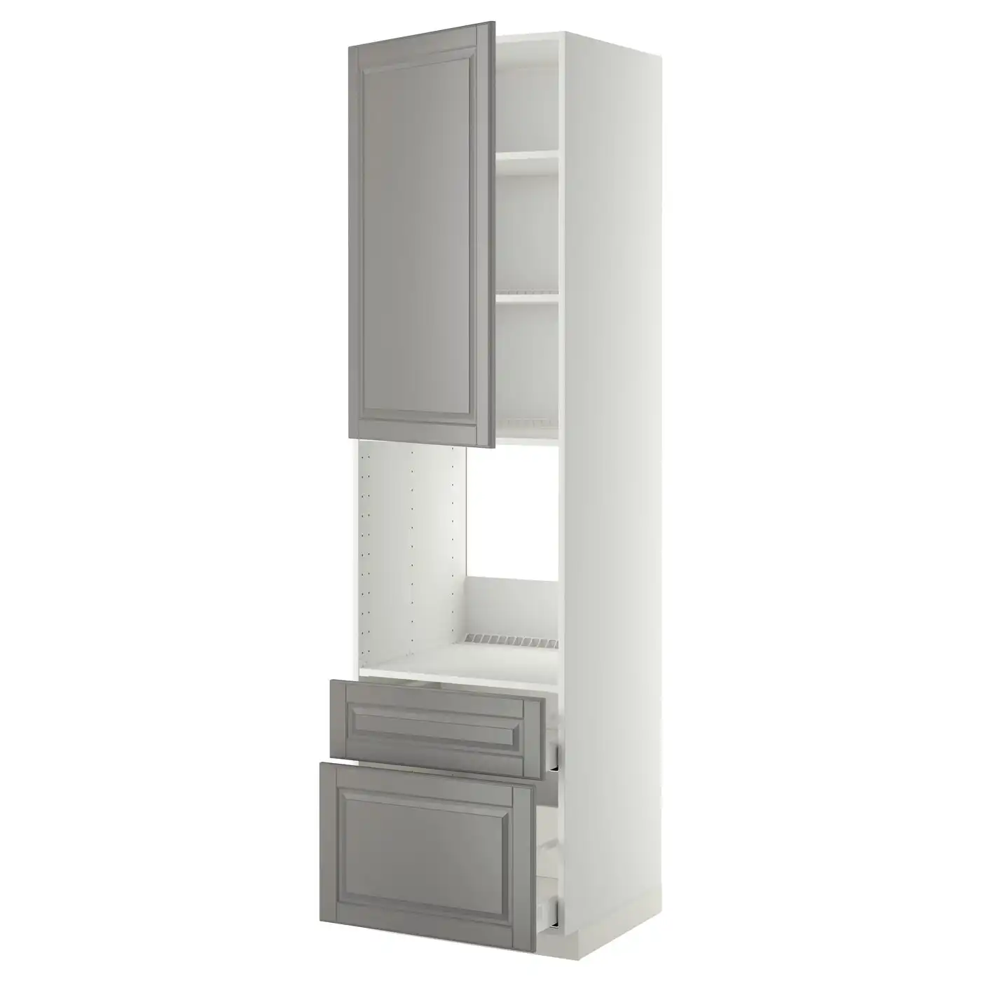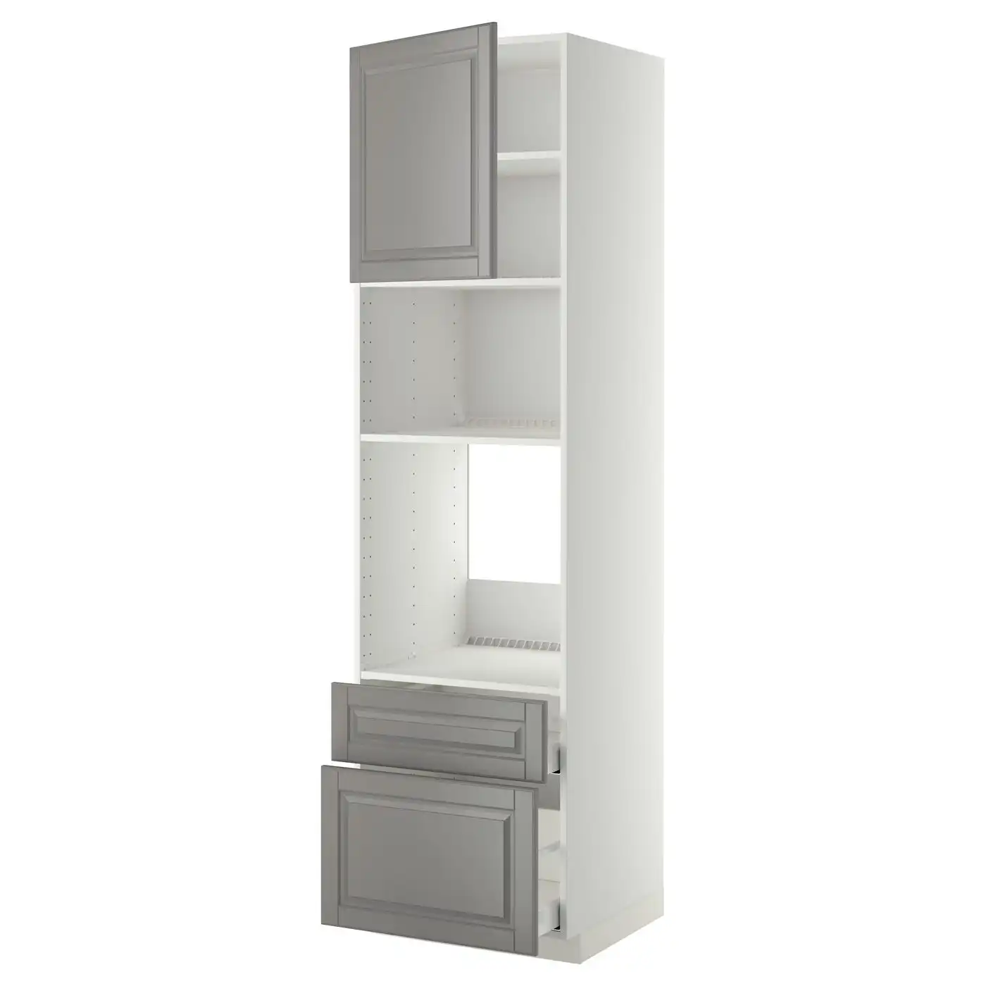METOD / MAXIMERA High cabinet f oven+door/2 drawers - white/Bodbyn grey 60x60x220 cm