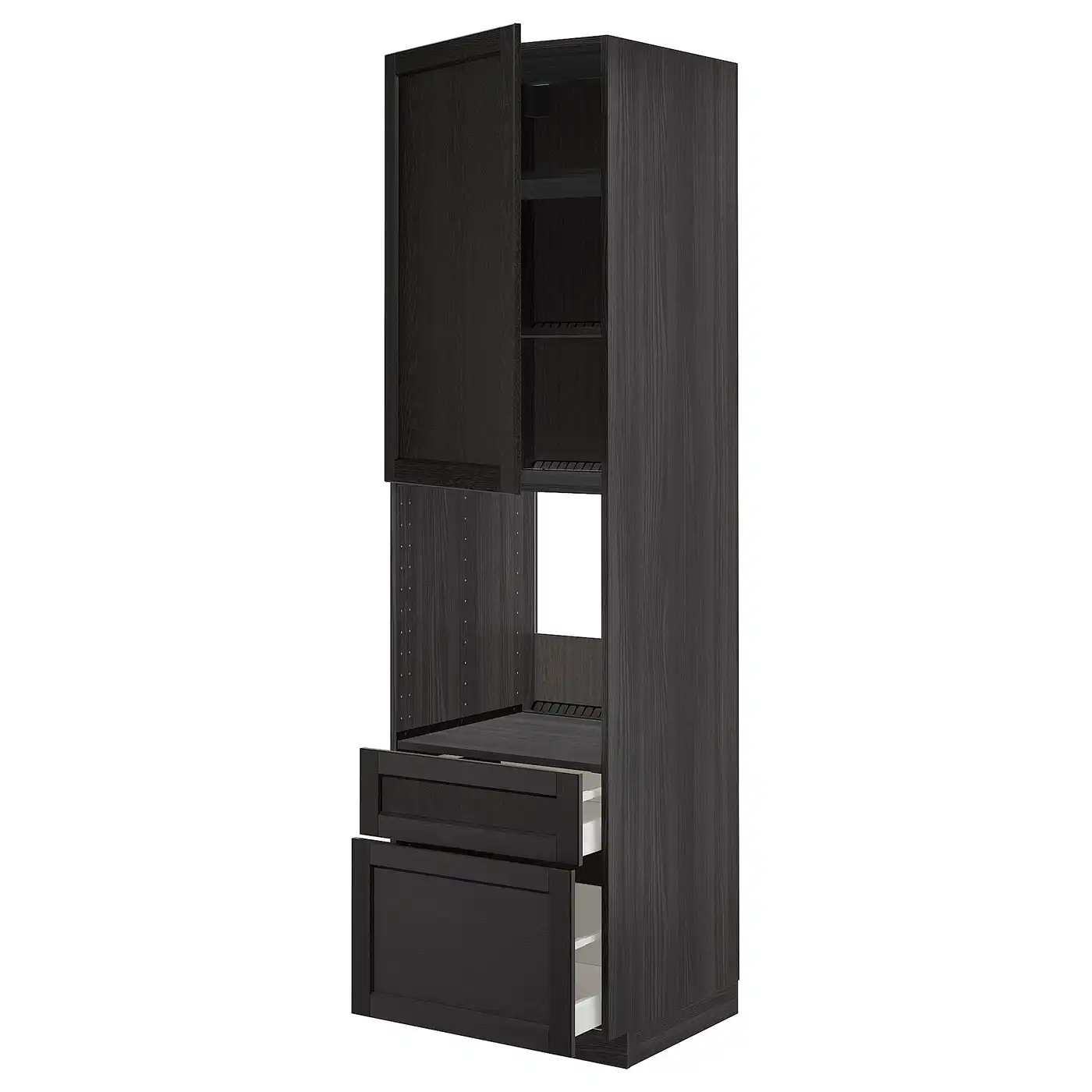 METOD / MAXIMERA High cabinet f oven+door/2 drawers - black/Lerhyttan black stained 60x60x220 cm