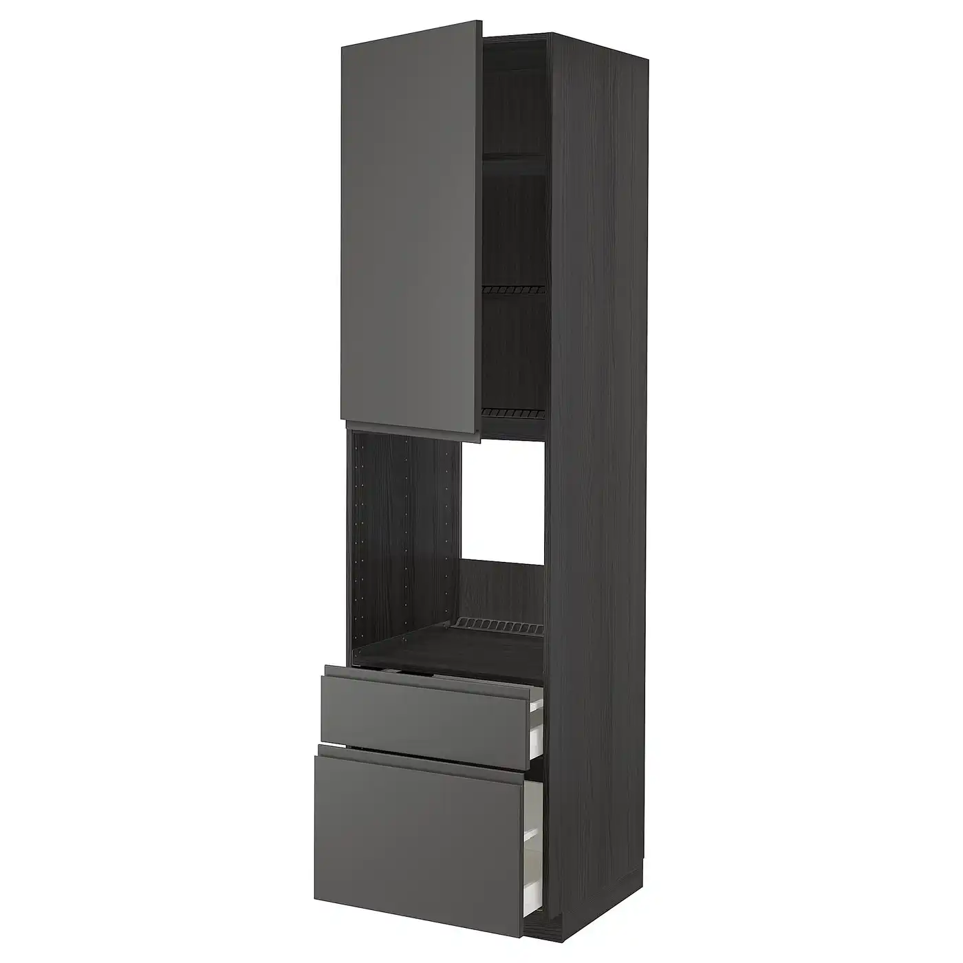 METOD / MAXIMERA High cabinet f oven+door/2 drawers - black/Voxtorp dark grey 60x60x220 cm