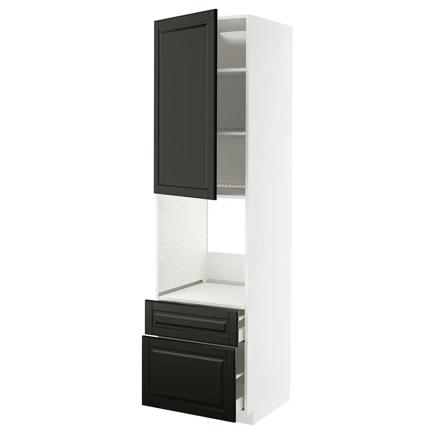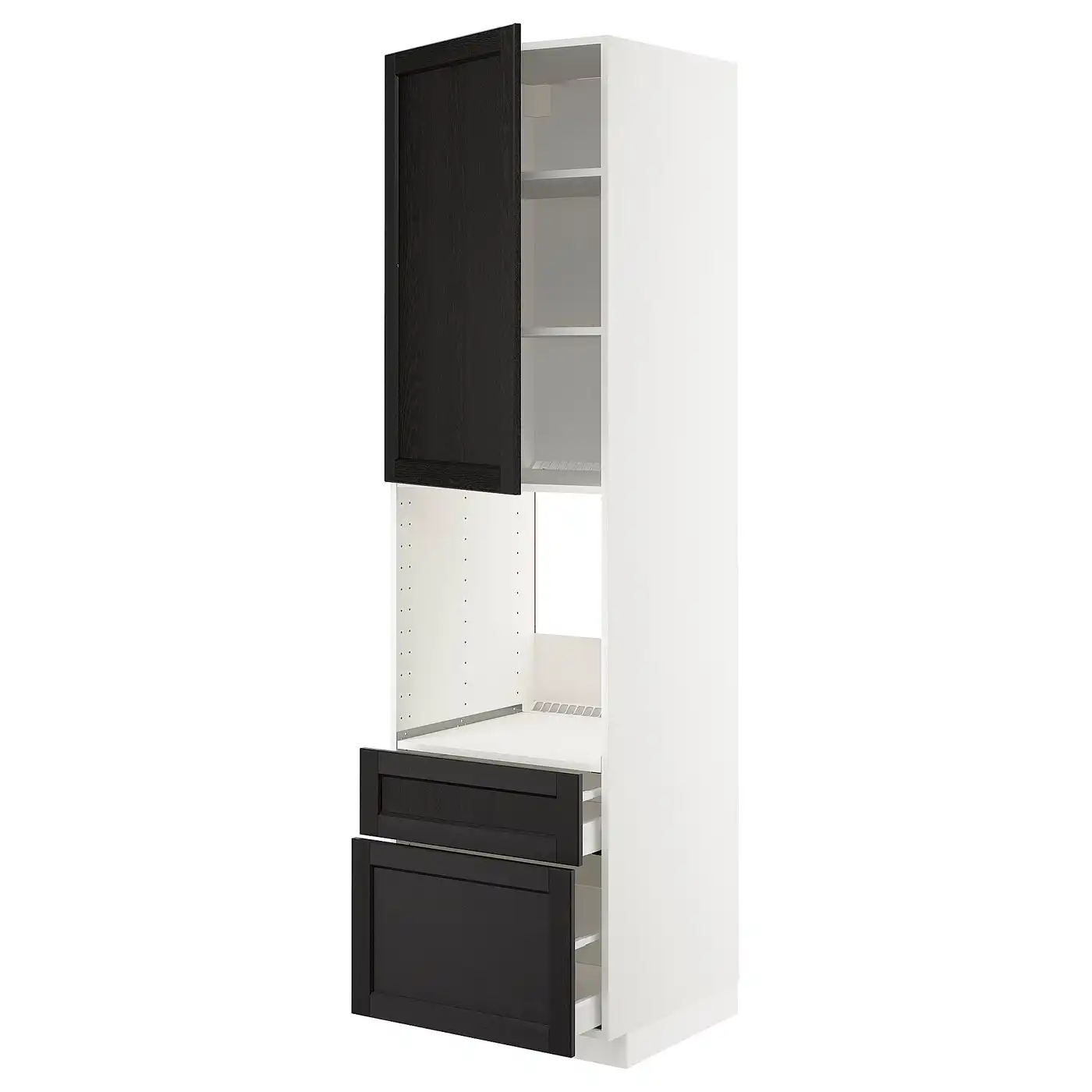 METOD / MAXIMERA High cabinet f oven+door/2 drawers - white/Lerhyttan black stained 60x60x220 cm
