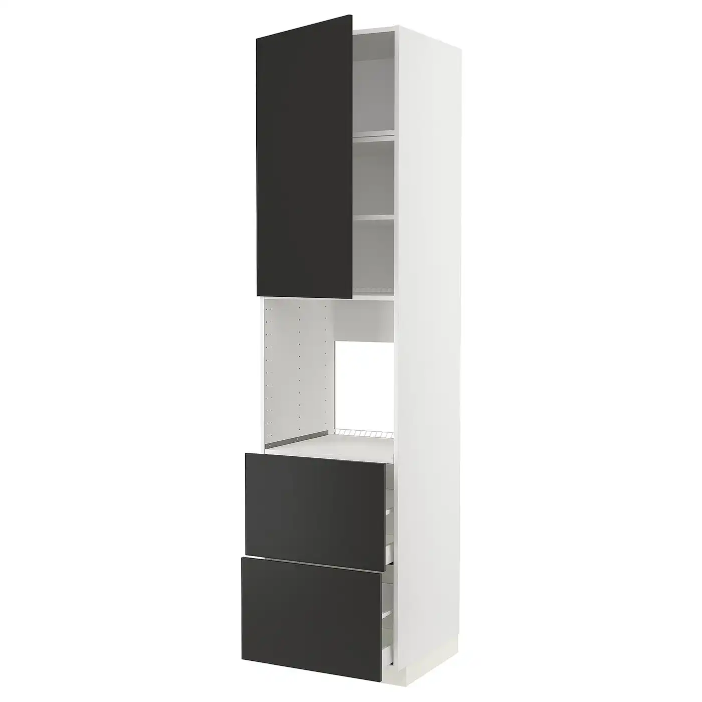 METOD / MAXIMERA High cabinet f oven+door/2 drawers - white/Nickebo matt anthracite 60x60x240 cm