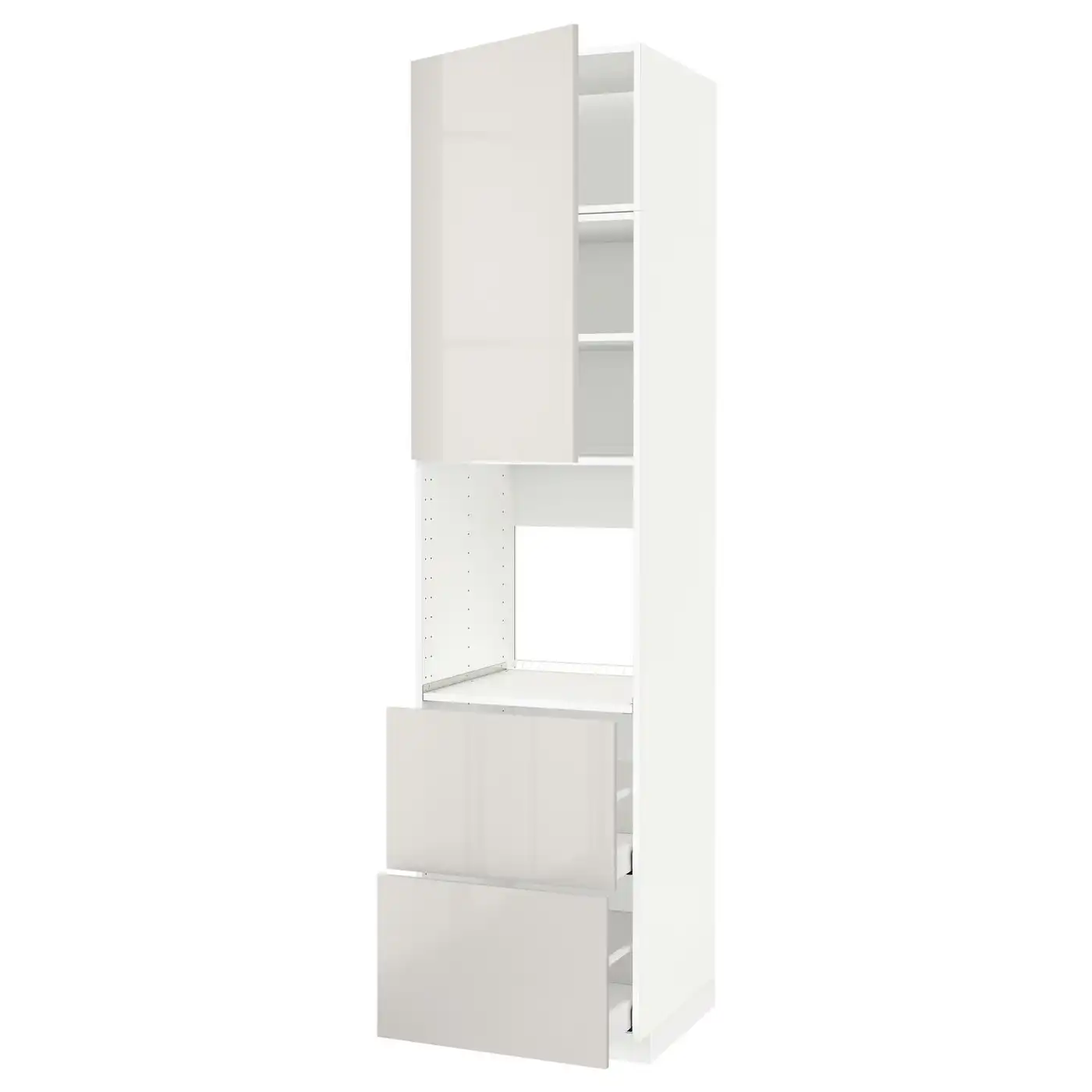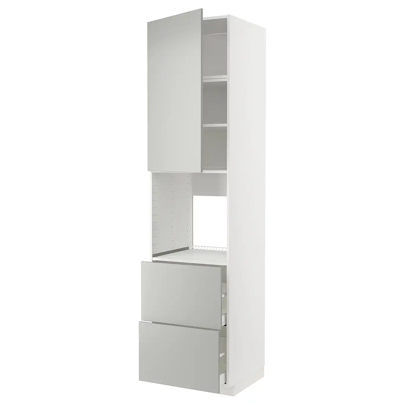 METOD / MAXIMERA High cabinet f oven+door/2 drawers - white/Havstorp light grey 60x60x240 cm