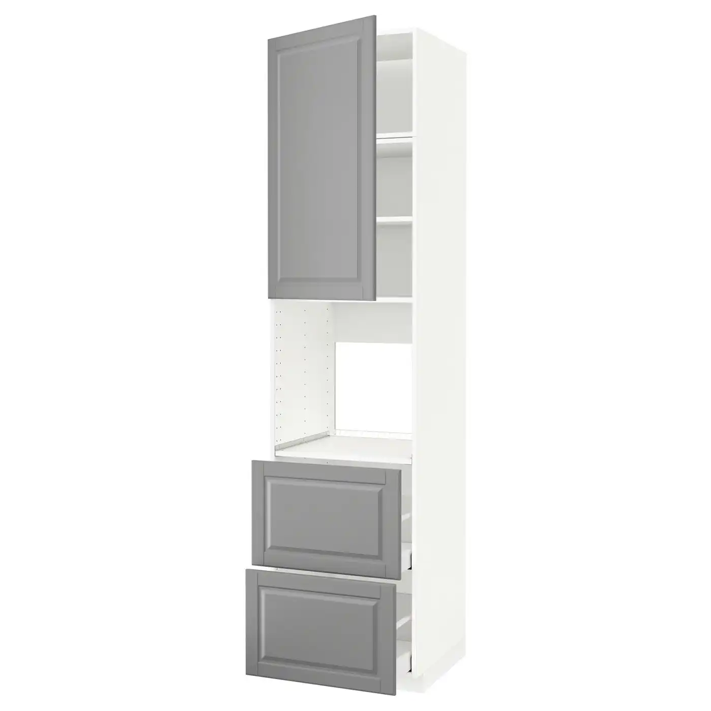 METOD / MAXIMERA High cabinet f oven+door/2 drawers - white/Bodbyn grey 60x60x240 cm