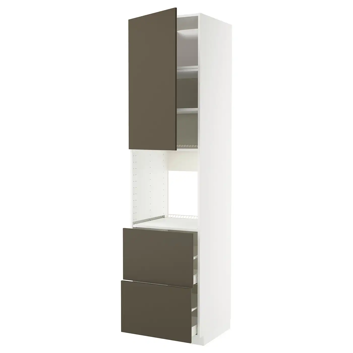 METOD / MAXIMERA High cabinet f oven+door/2 drawers - white/Havstorp brown-beige 60x60x240 cm