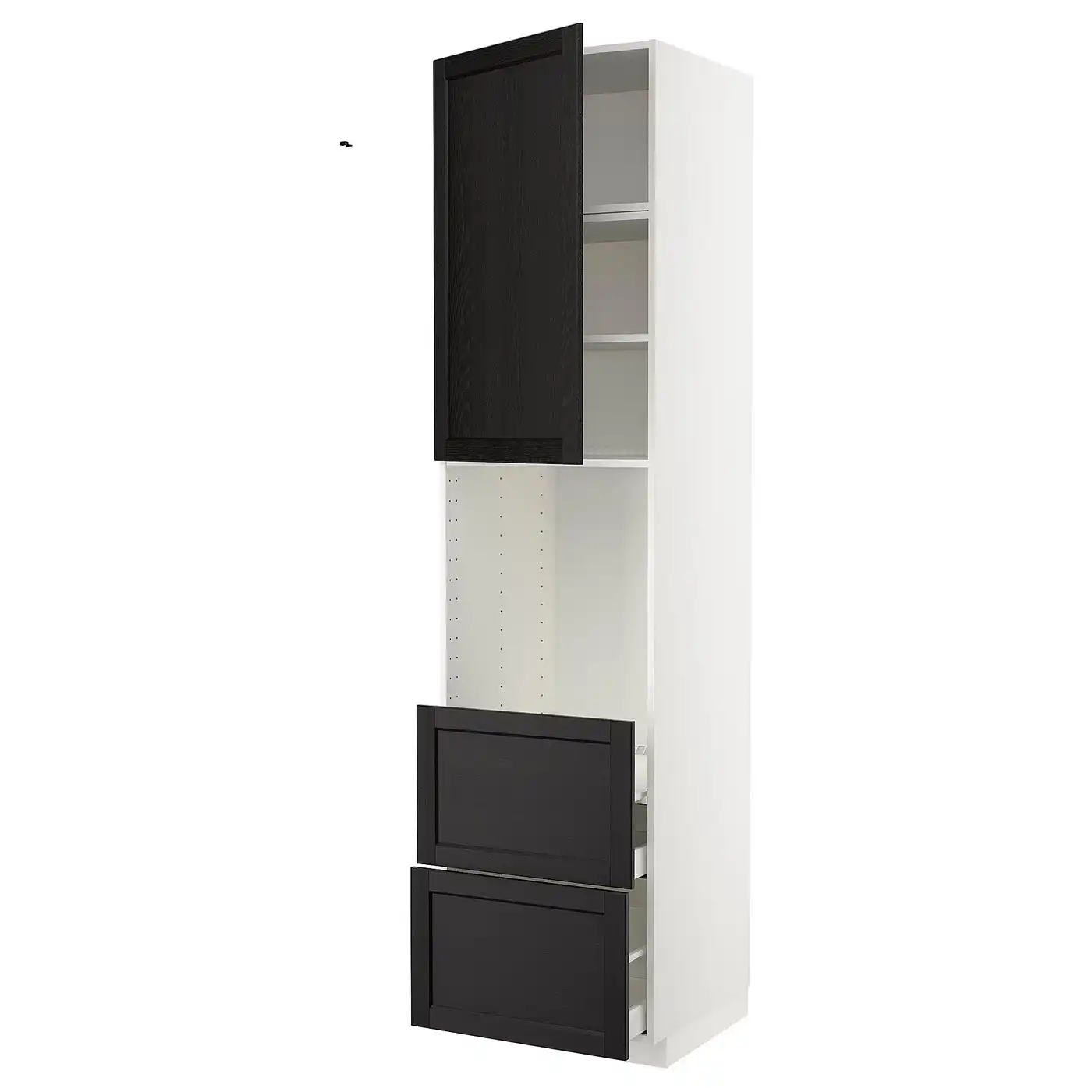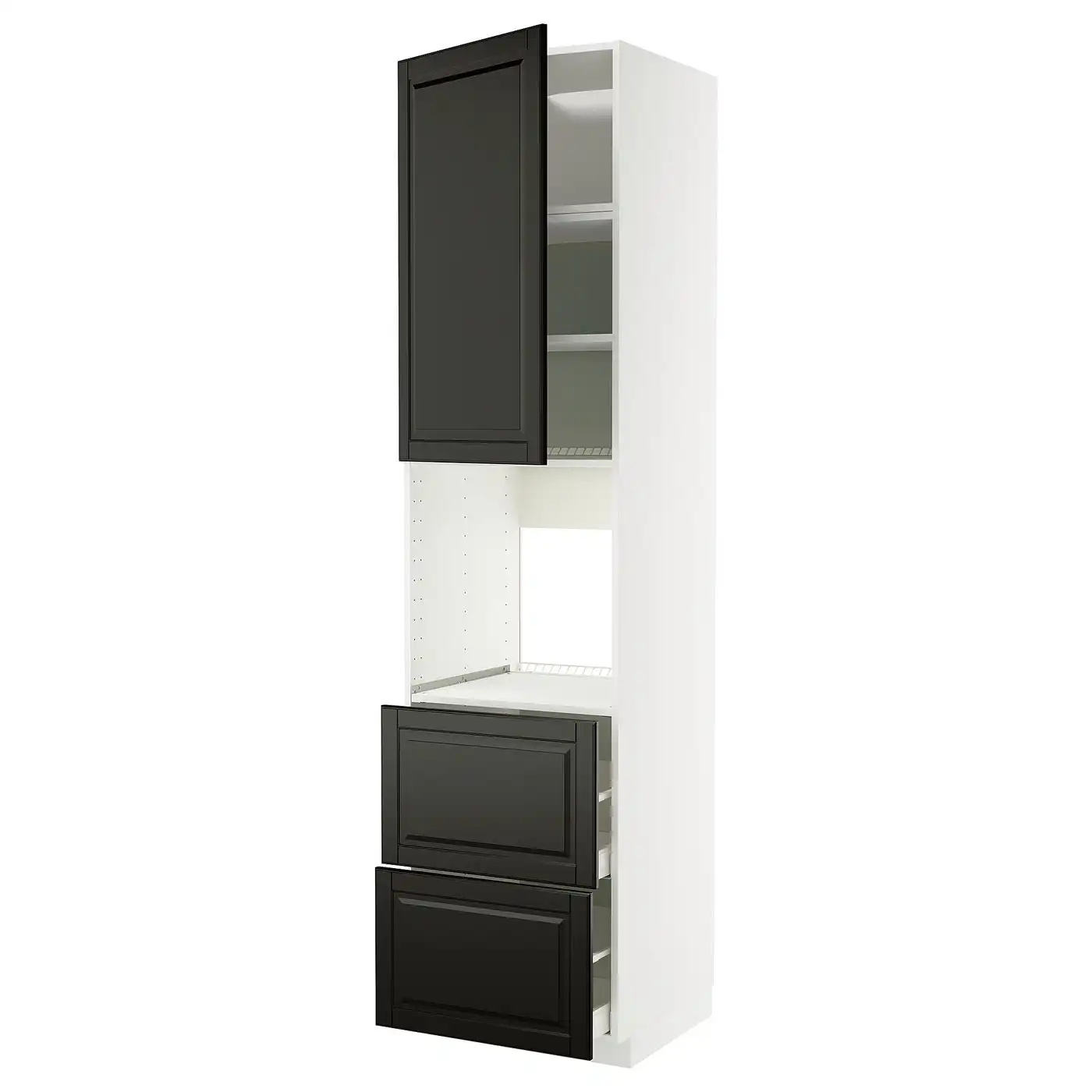 METOD / MAXIMERA High cabinet f oven+door/2 drawers - white/Lerhyttan black stained 60x60x240 cm