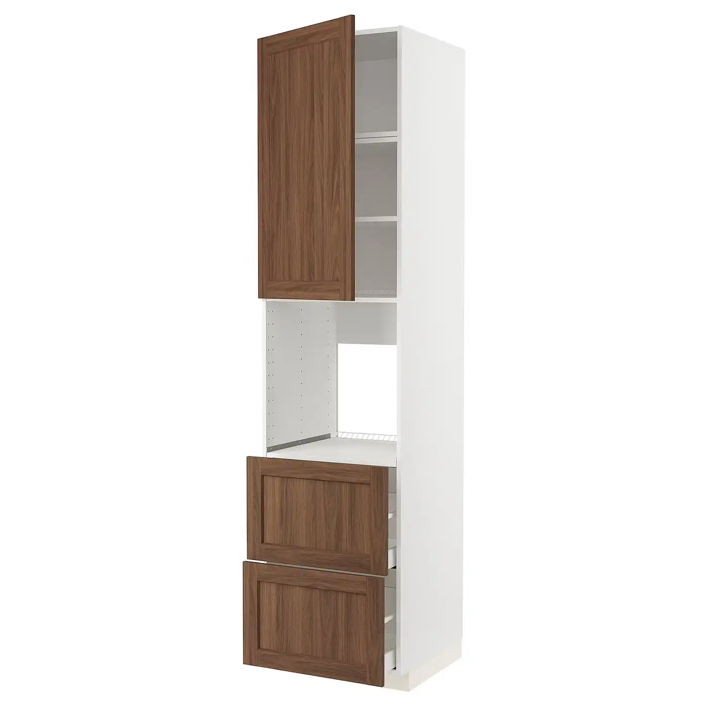 METOD / MAXIMERA High cabinet f oven+door/2 drawers - white Enköping/brown walnut effect 60x60x240 cm