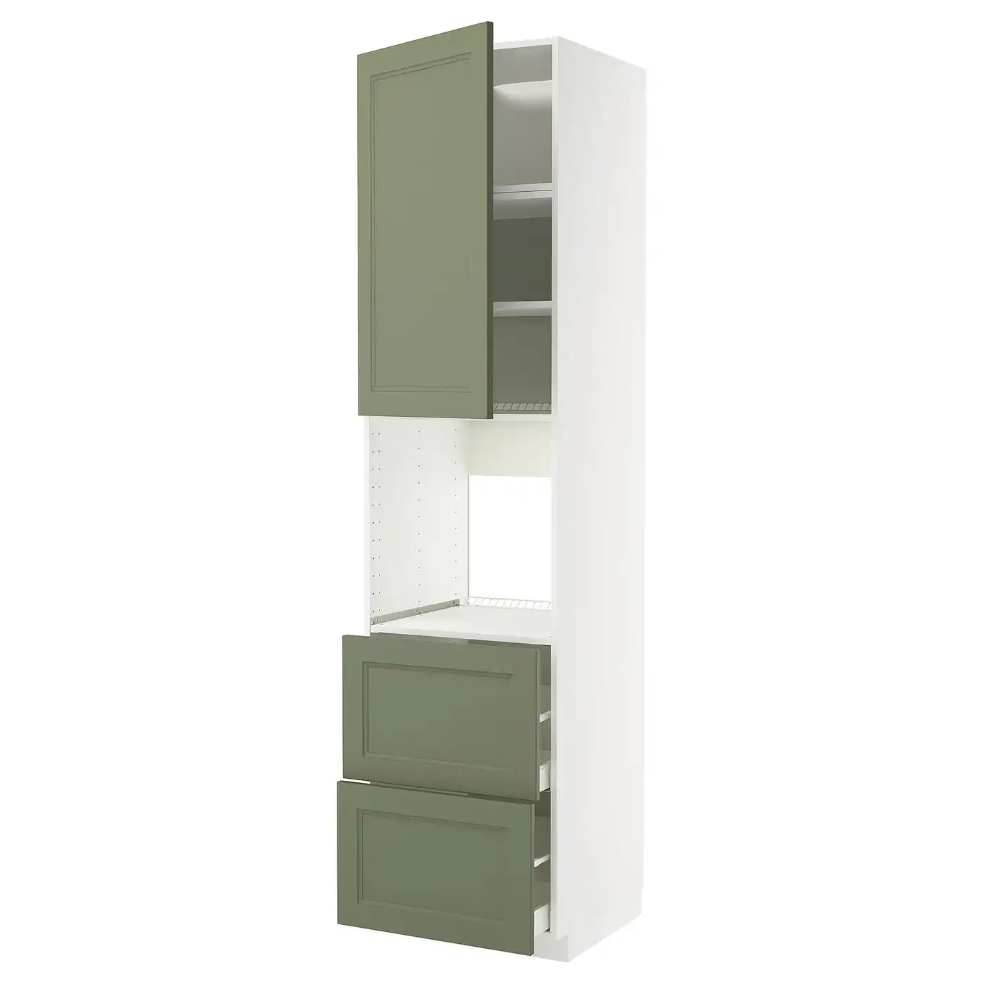 METOD / MAXIMERA High cabinet f oven+door/2 drawers - white/Axstad grey-green 60x60x240 cm