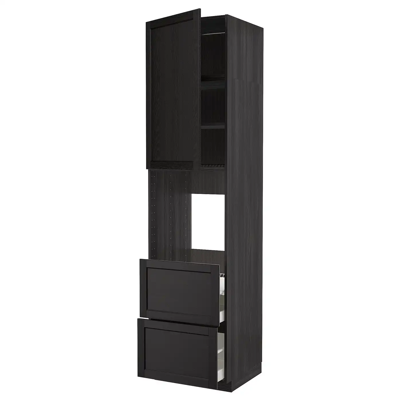 METOD / MAXIMERA High cabinet f oven+door/2 drawers - black/Lerhyttan black stained 60x60x240 cm