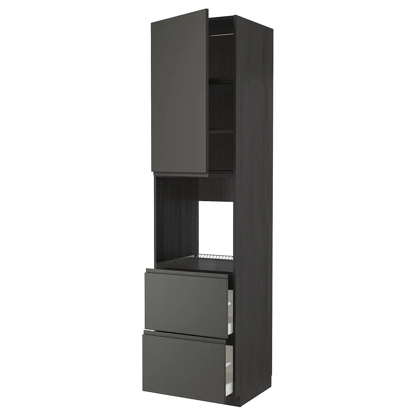 METOD / MAXIMERA High cabinet f oven+door/2 drawers - black/Voxtorp dark grey 60x60x240 cm