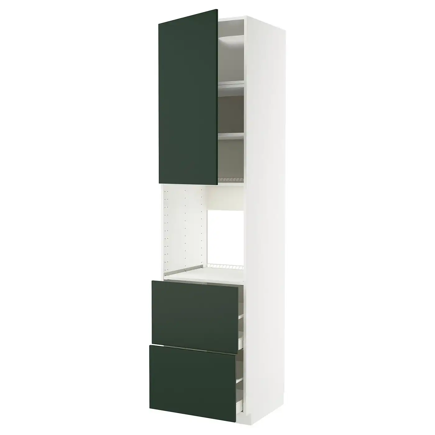 METOD / MAXIMERA High cabinet f oven+door/2 drawers - white/Havstorp deep green 60x60x240 cm