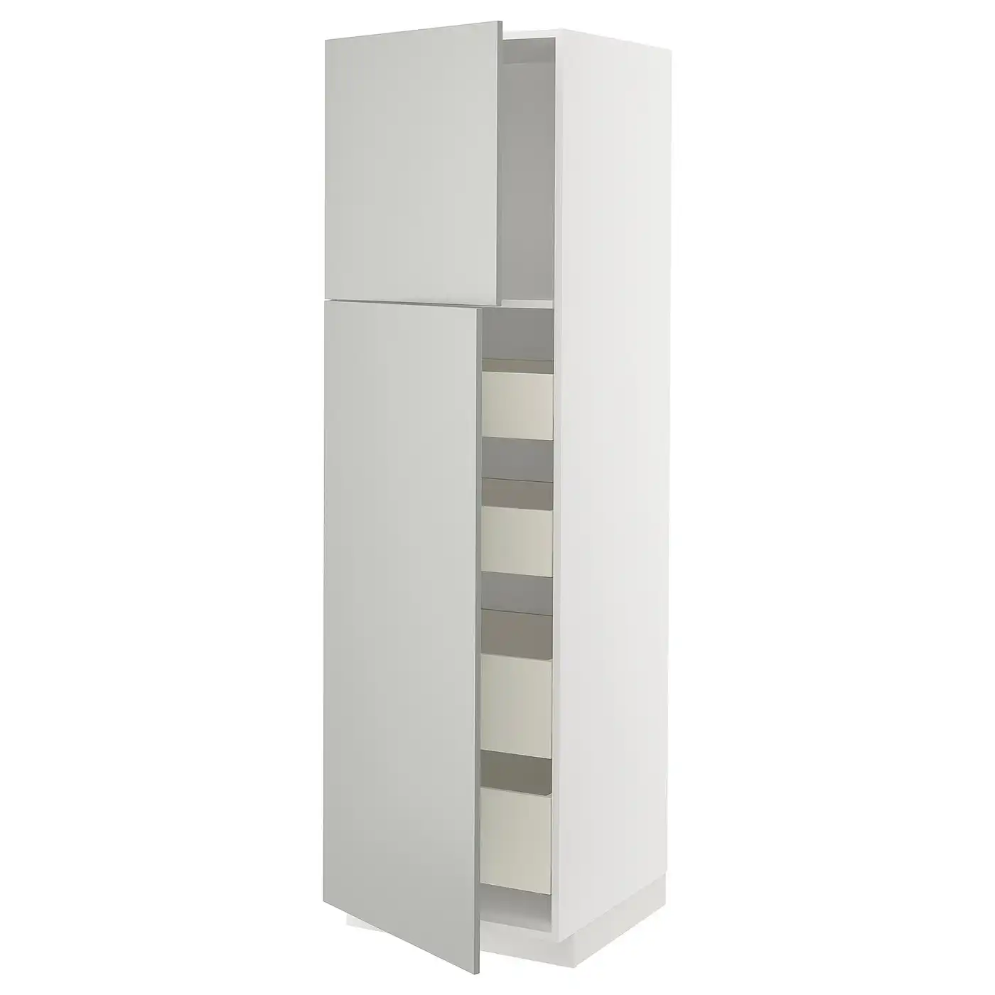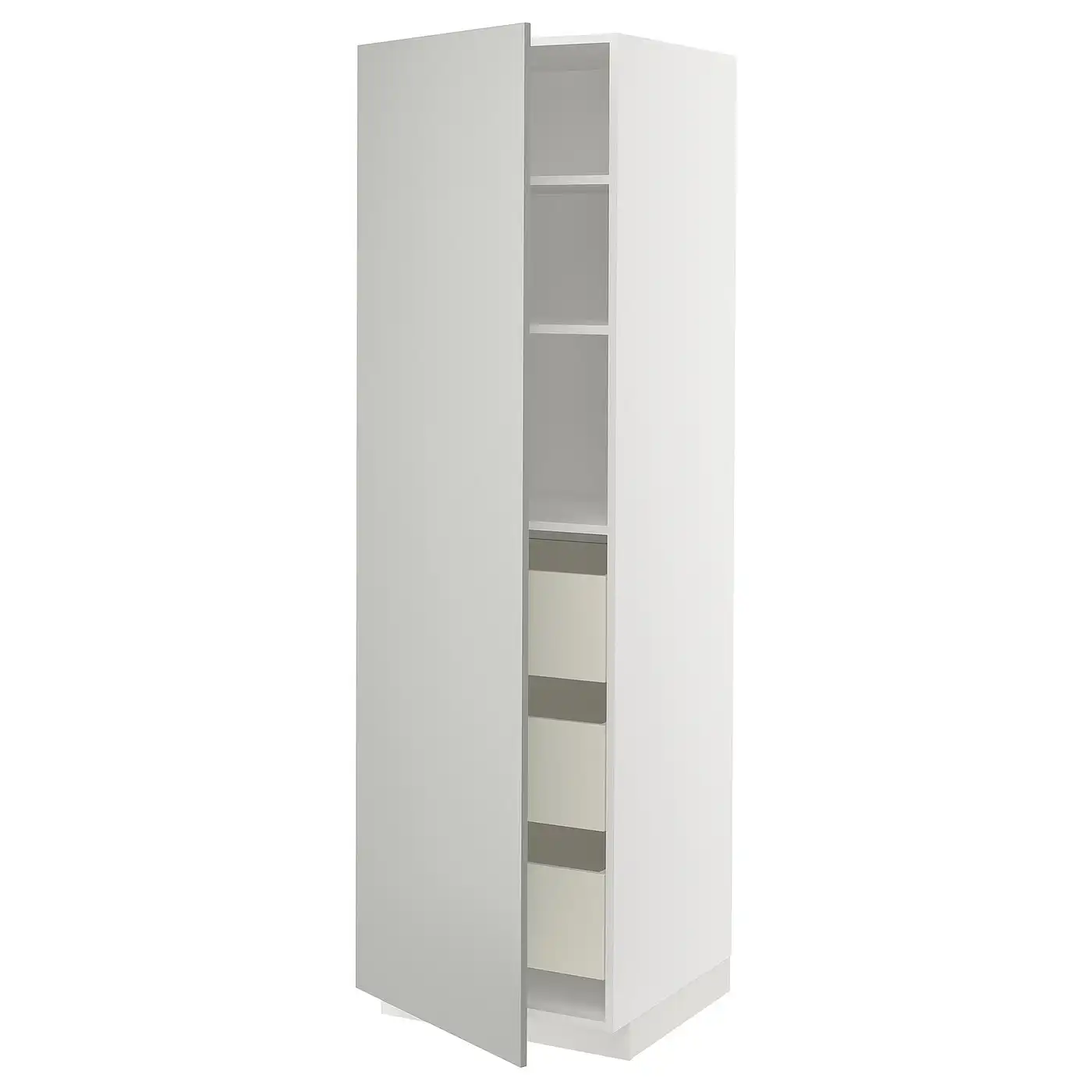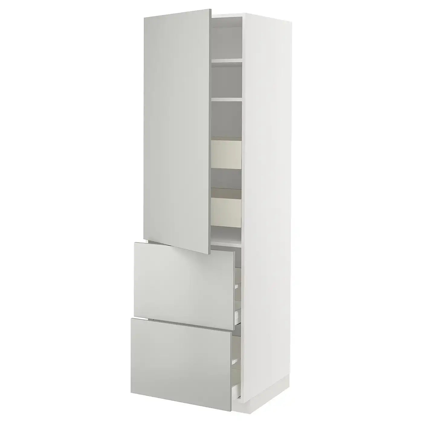 METOD / MAXIMERA High cabinet with drawers - white/Havstorp light grey 60x60x200 cm