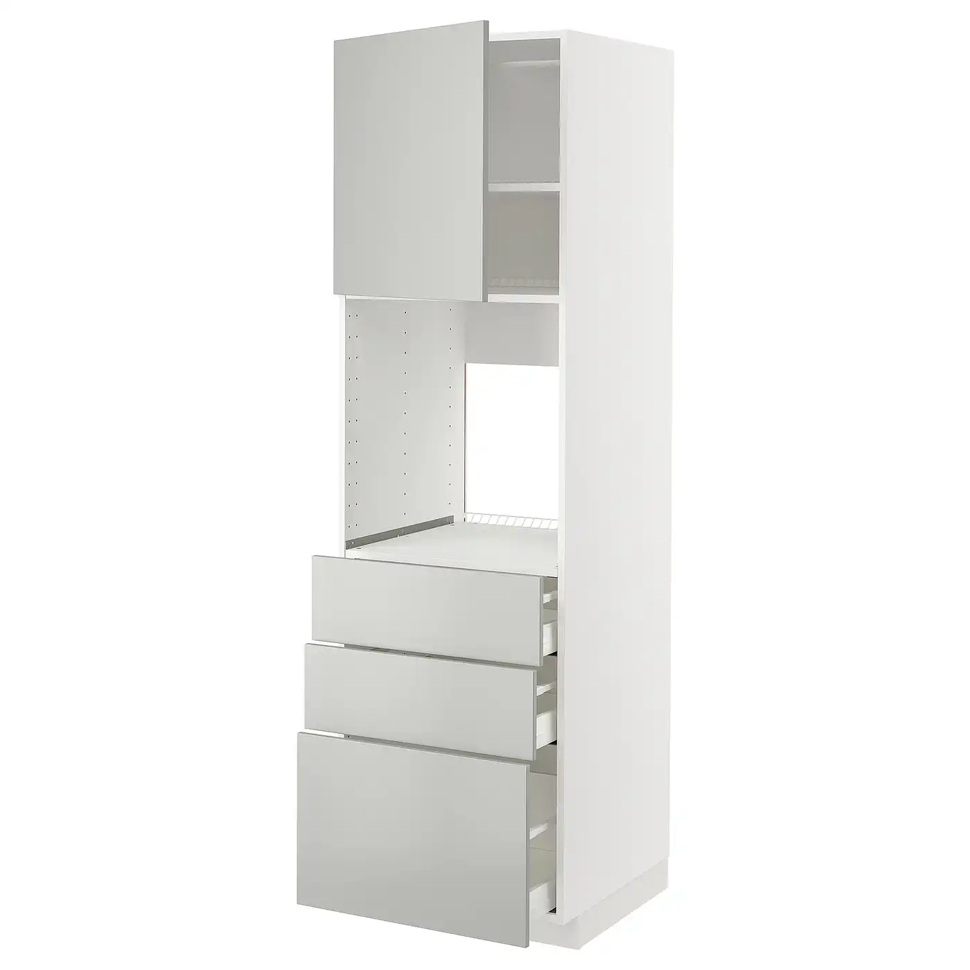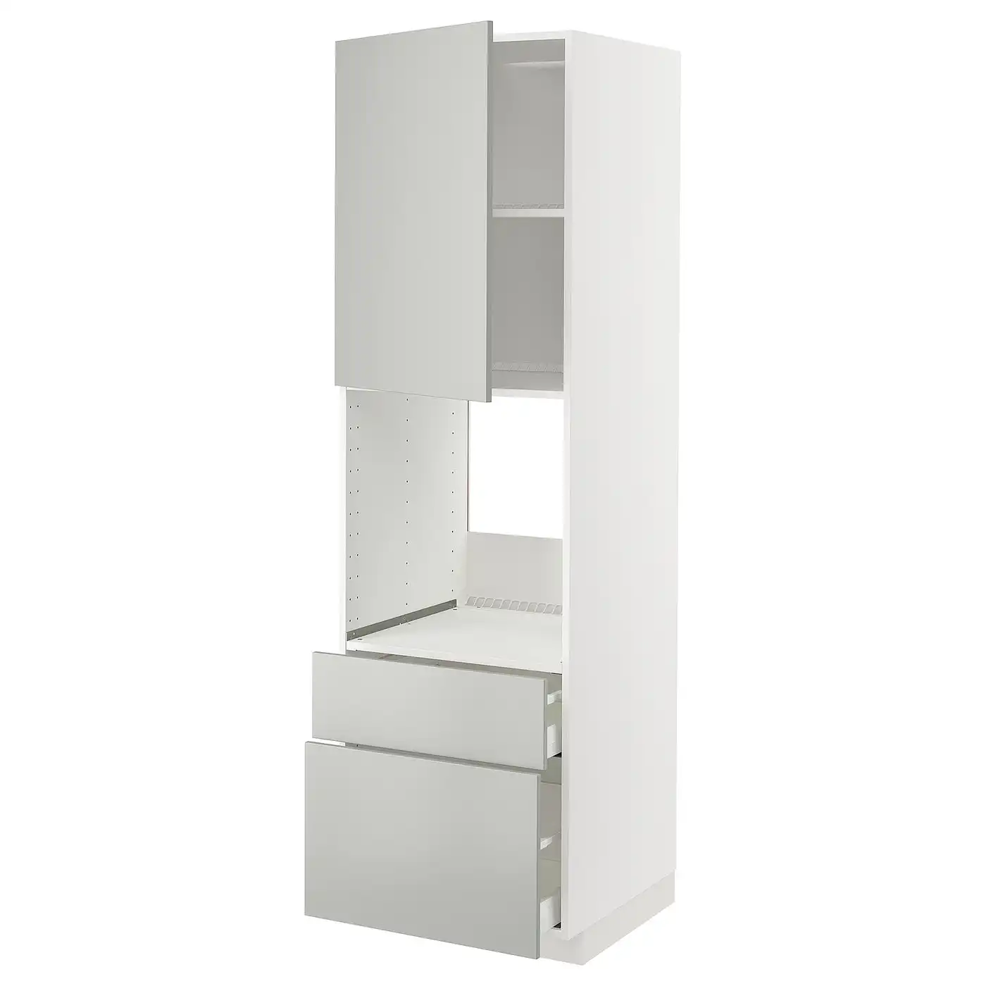 METOD / MAXIMERA High cabinet f oven+door/2 drawers - white/Havstorp light grey 60x60x200 cm