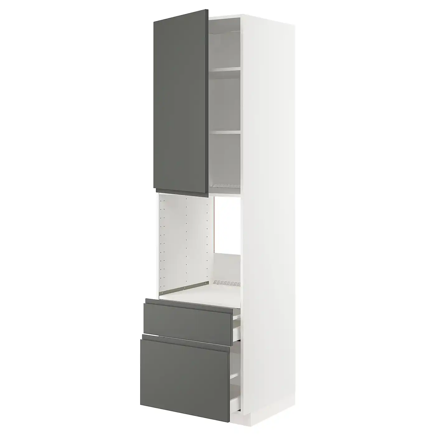 METOD / MAXIMERA High cabinet f oven+door/2 drawers - white/Voxtorp dark grey 60x60x220 cm