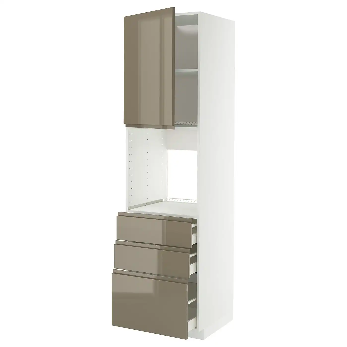 METOD / MAXIMERA High cab f oven w door/3 drawers - white/Voxtorp high-gloss dark grey-brown 60x60x220 cm