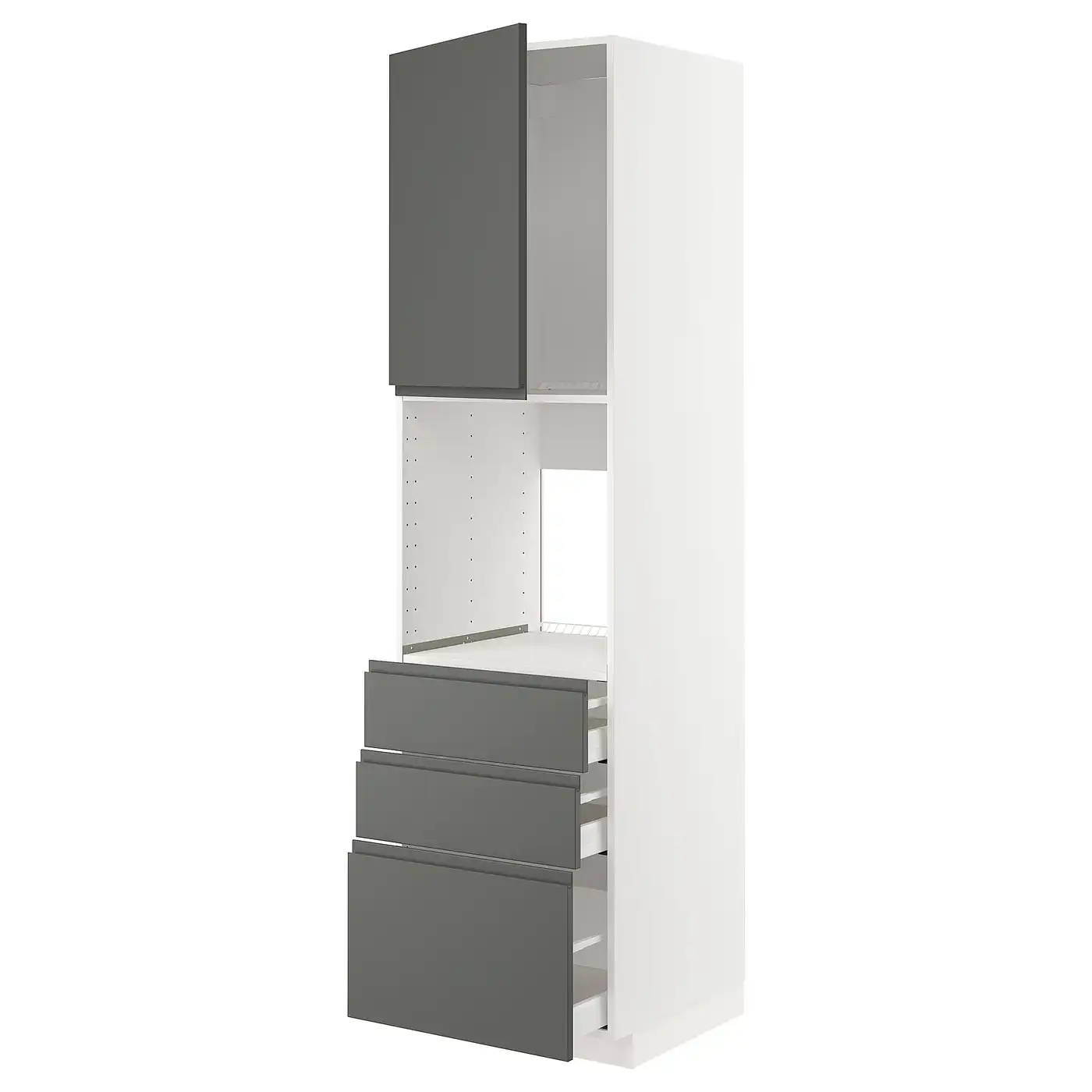 METOD / MAXIMERA High cab f oven w door/3 drawers - white/Voxtorp dark grey 60x60x220 cm