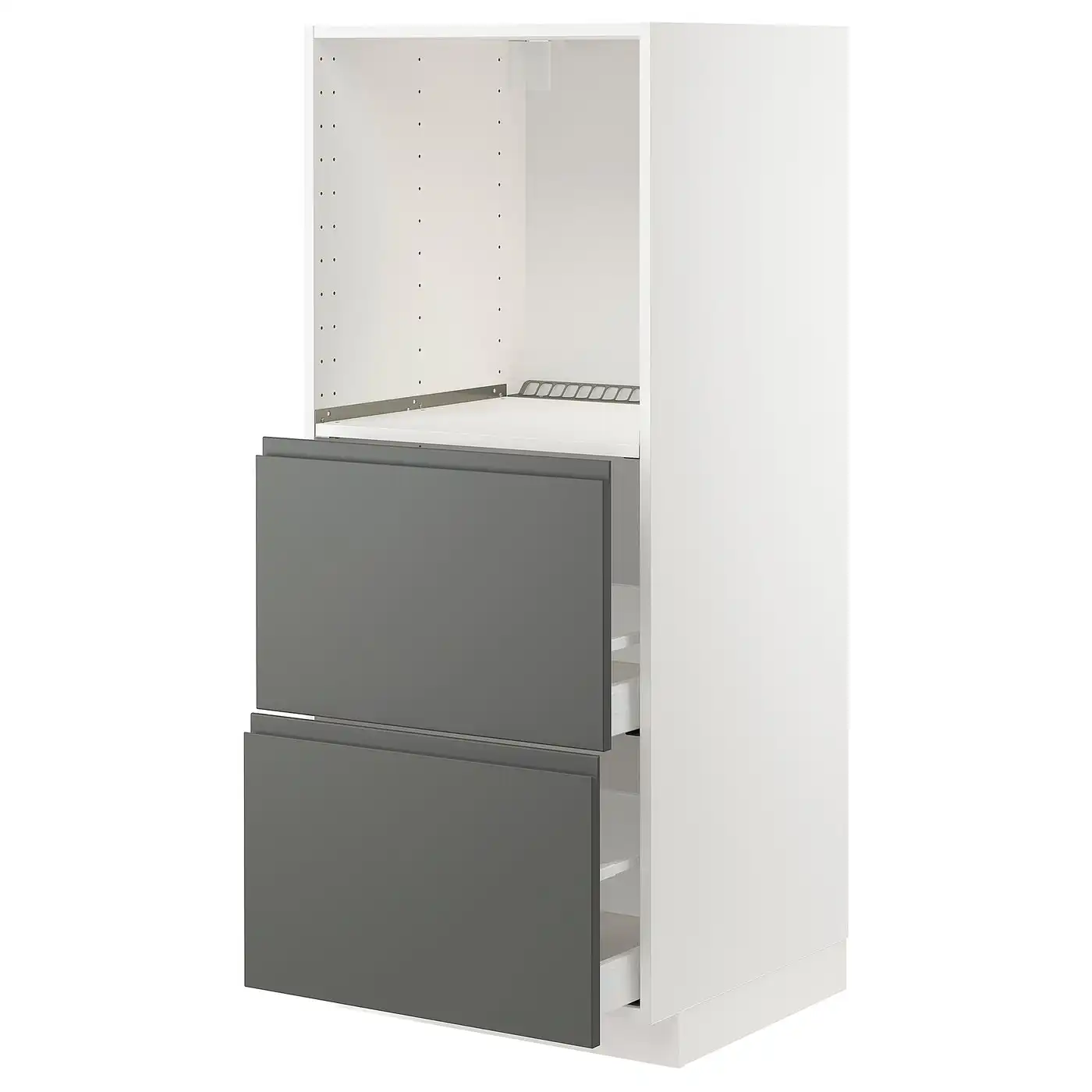 METOD / MAXIMERA High cabinet w 2 drawers for oven - white/Voxtorp dark grey 60x60x140 cm