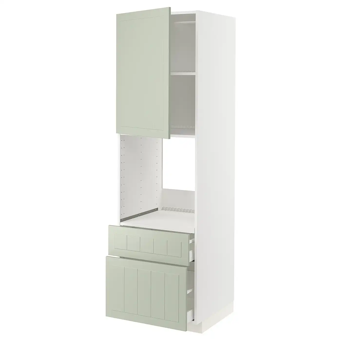 METOD / MAXIMERA High cabinet f oven+door/2 drawers - white/Stensund light green 60x60x200 cm