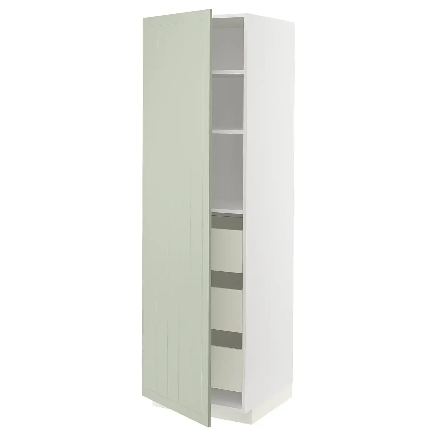 METOD / MAXIMERA Hi cab w shlvs/4 drawers/dr/2 frnts - white/Stensund light green 60x60x200 cm