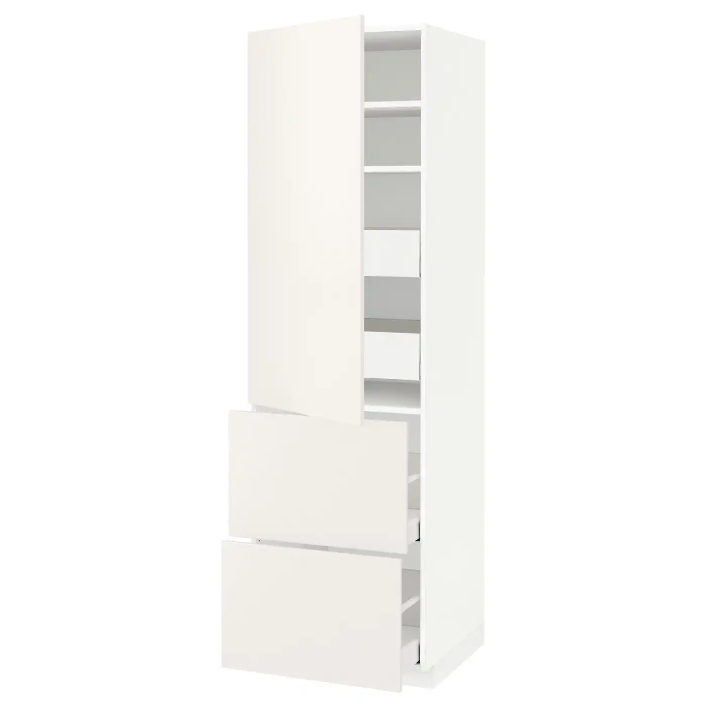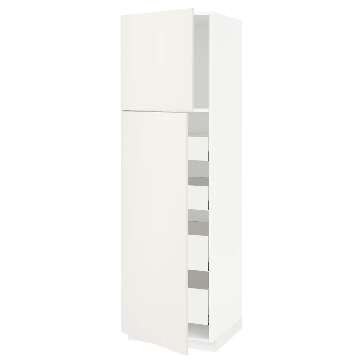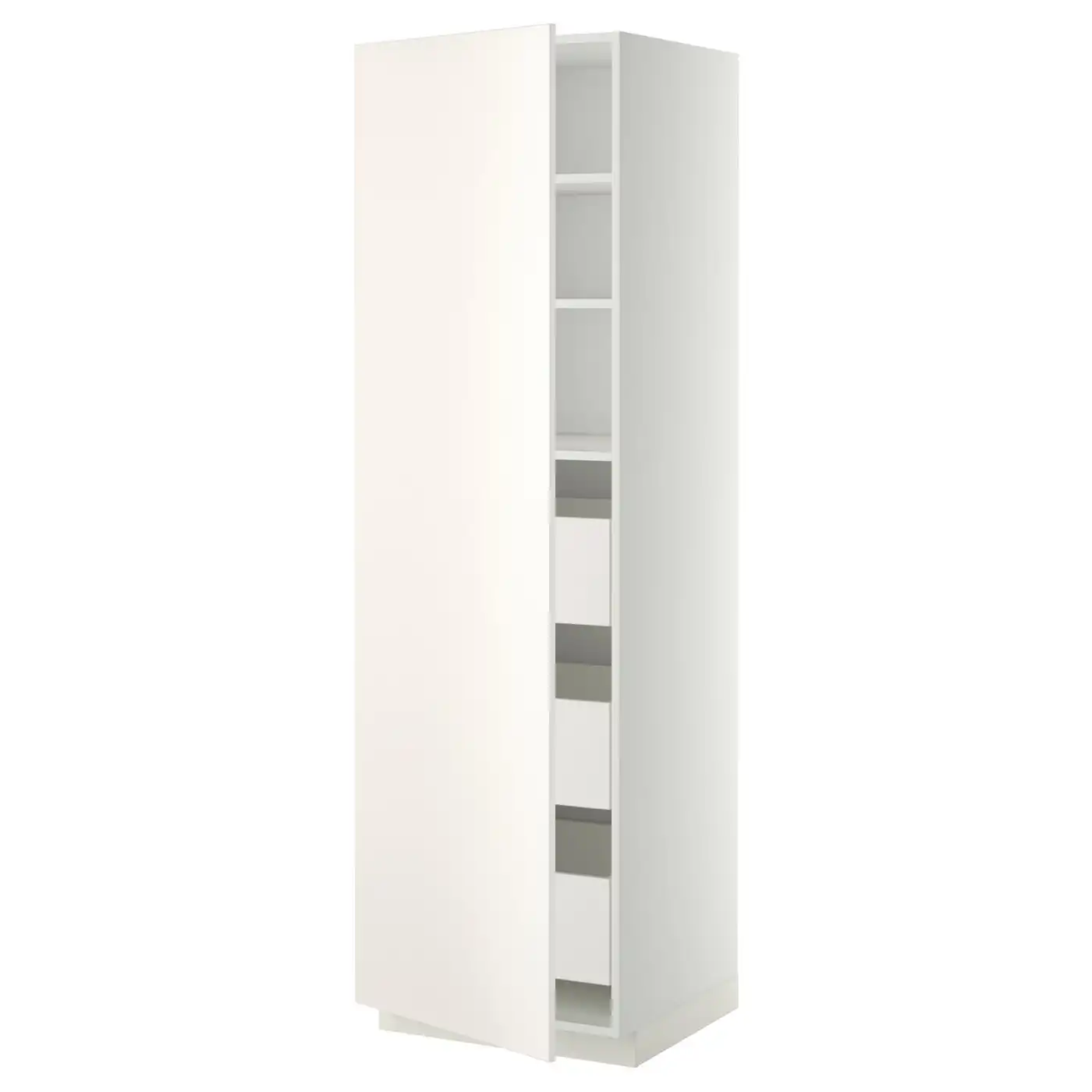 METOD / MAXIMERA Hi cab w shlvs/4 drawers/dr/2 frnts - white/Veddinge white 60x60x200 cm
