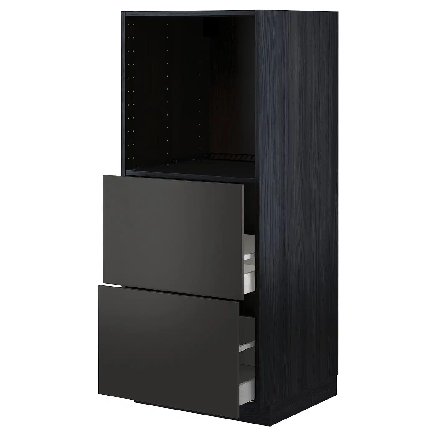 METOD / MAXIMERA High cabinet w 2 drawers for oven - black/Nickebo matt anthracite 60x60x140 cm