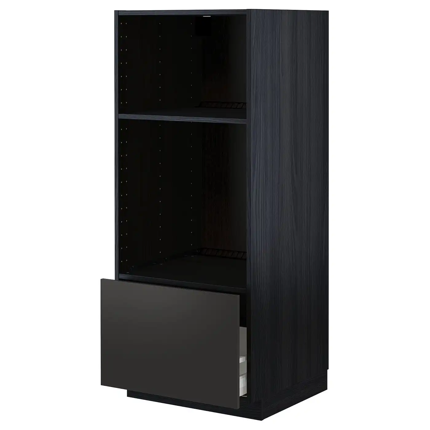 METOD / MAXIMERA High cab for oven/micro w drawer - black/Nickebo matt anthracite 60x60x140 cm