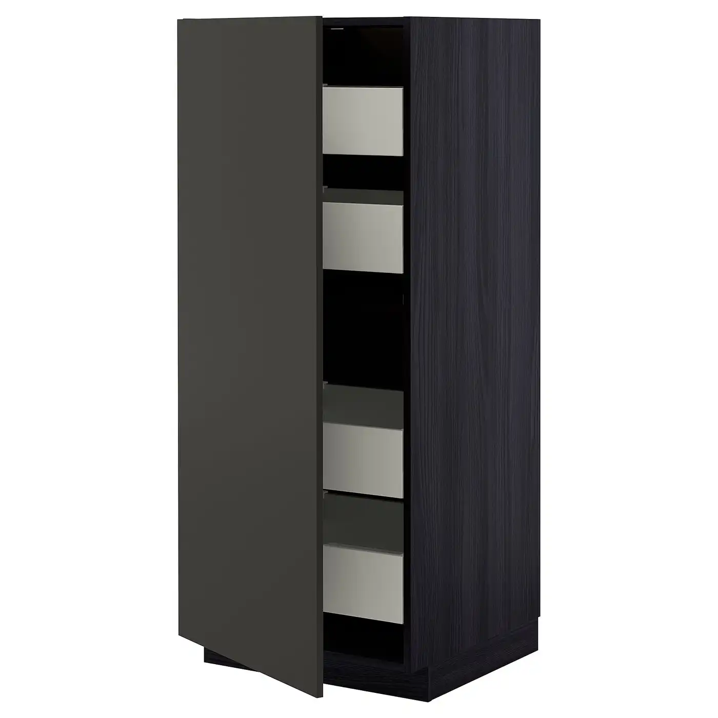 METOD / MAXIMERA High cabinet with drawers - black/Nickebo matt anthracite 60x60x140 cm