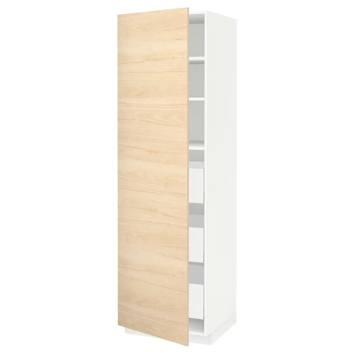 METOD / MAXIMERA Hi cab w shlvs/4 drawers/dr/2 frnts - white/Askersund light ash effect 60x60x200 cm