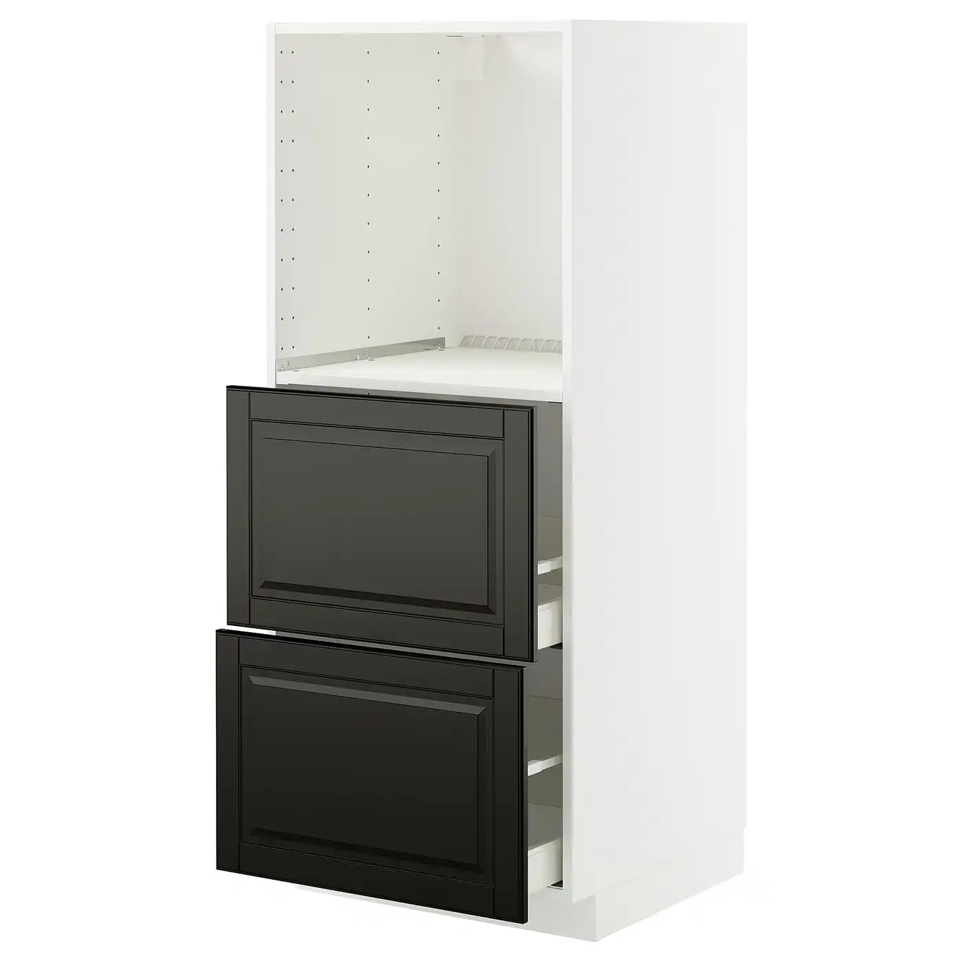 METOD / MAXIMERA High cabinet with drawers - white/Bodbyn black 60x60x140 cm