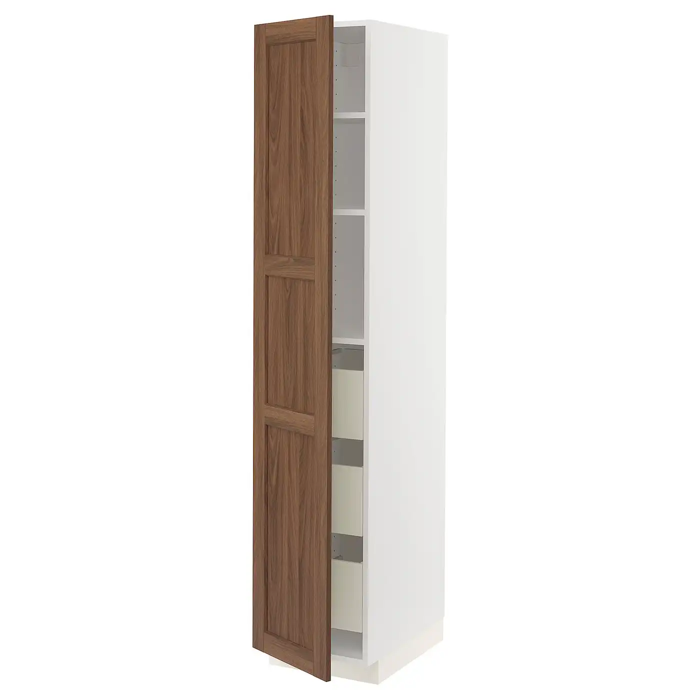 METOD / MAXIMERA High cabinet with drawers - white Enköping/brown walnut effect 40x60x200 cm — Price History & Tracker | DeserTracker