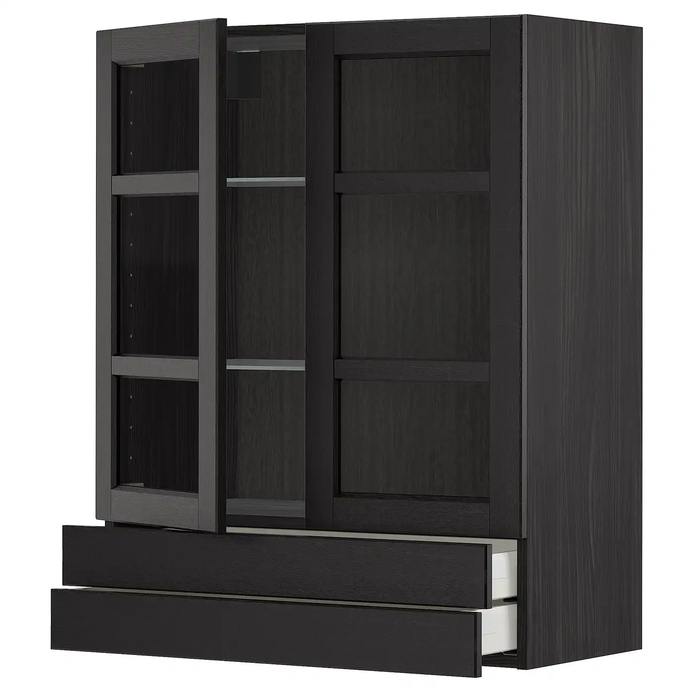 METOD / MAXIMERA Wall cab w 2 glass doors/2 drawers - black/Lerhyttan black stained 80x100 cm