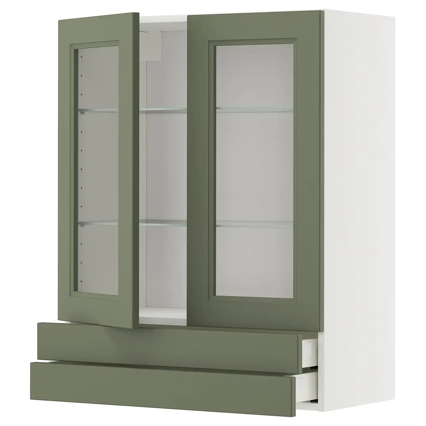IKEA METOD Wall cabinet with 2 glass doors and 2 drawers 80x100 cm AXSTAD grey-green/white