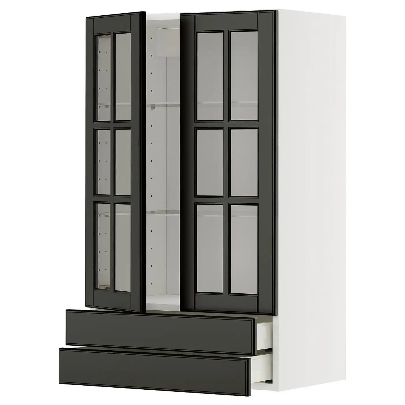 IKEA METOD Wall cabinet with 2 glass doors and 2 drawers 60x100 cm BODBYN black/white