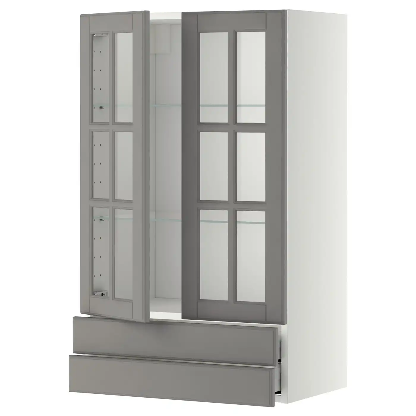 IKEA METOD Wall cabinet with 2 glass doors and 2 drawers 60x100 cm BODBYN white/grey