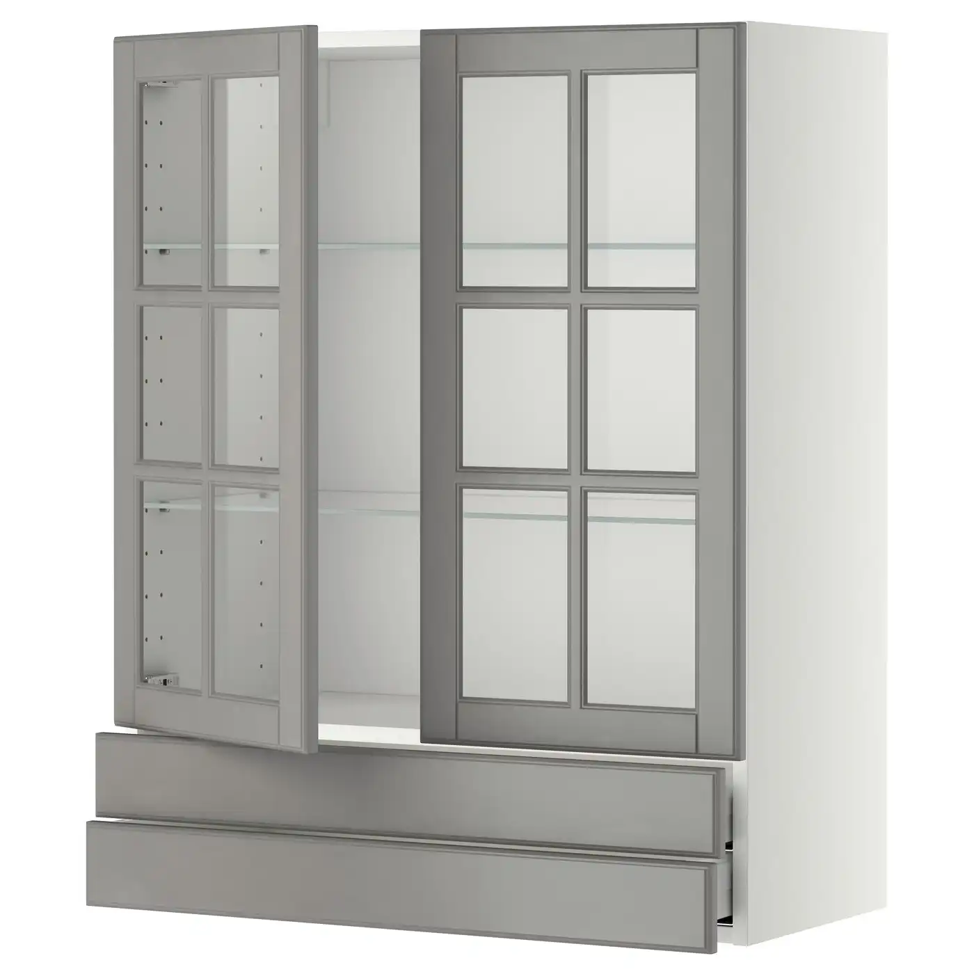 IKEA METOD Wall cabinet with 2 glass doors and 2 drawers 80x100 cm BODBYN grey
