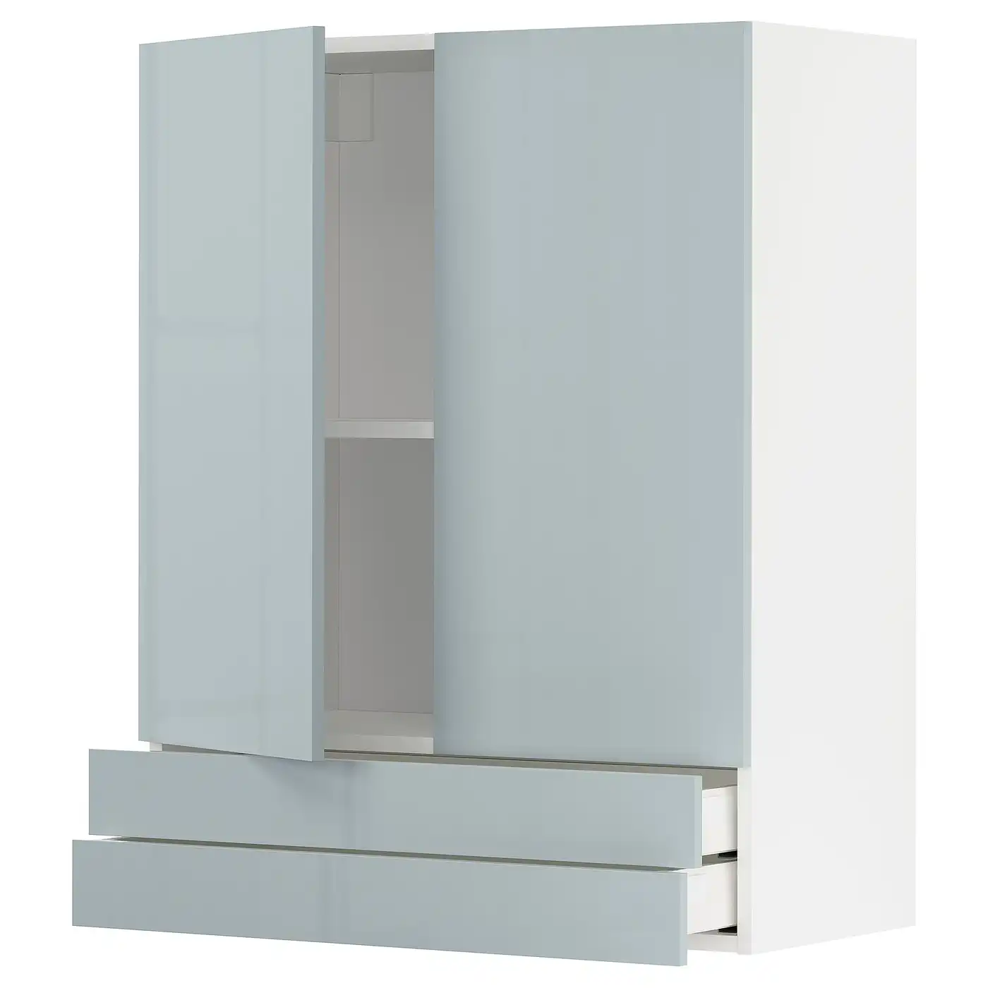 IKEA METOD Wall cabinet with 2 doors and 2 drawers 80x100 cm KALLARP light grey-blue/white