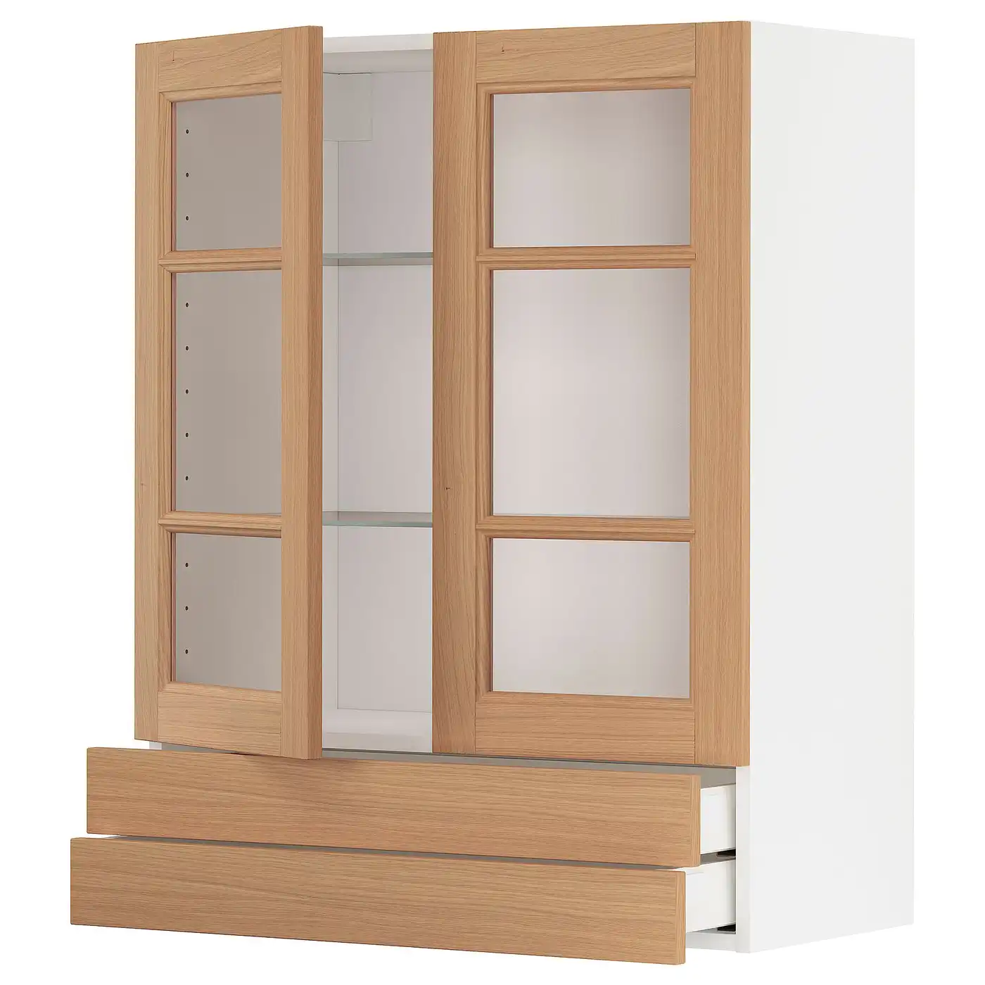 METOD / MAXIMERA Wall cab w 2 glass doors/2 drawers - white/Vedhamn oak 80x100 cm