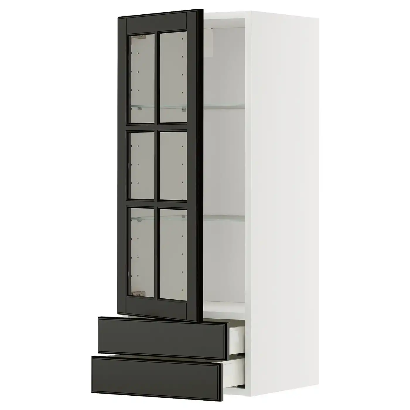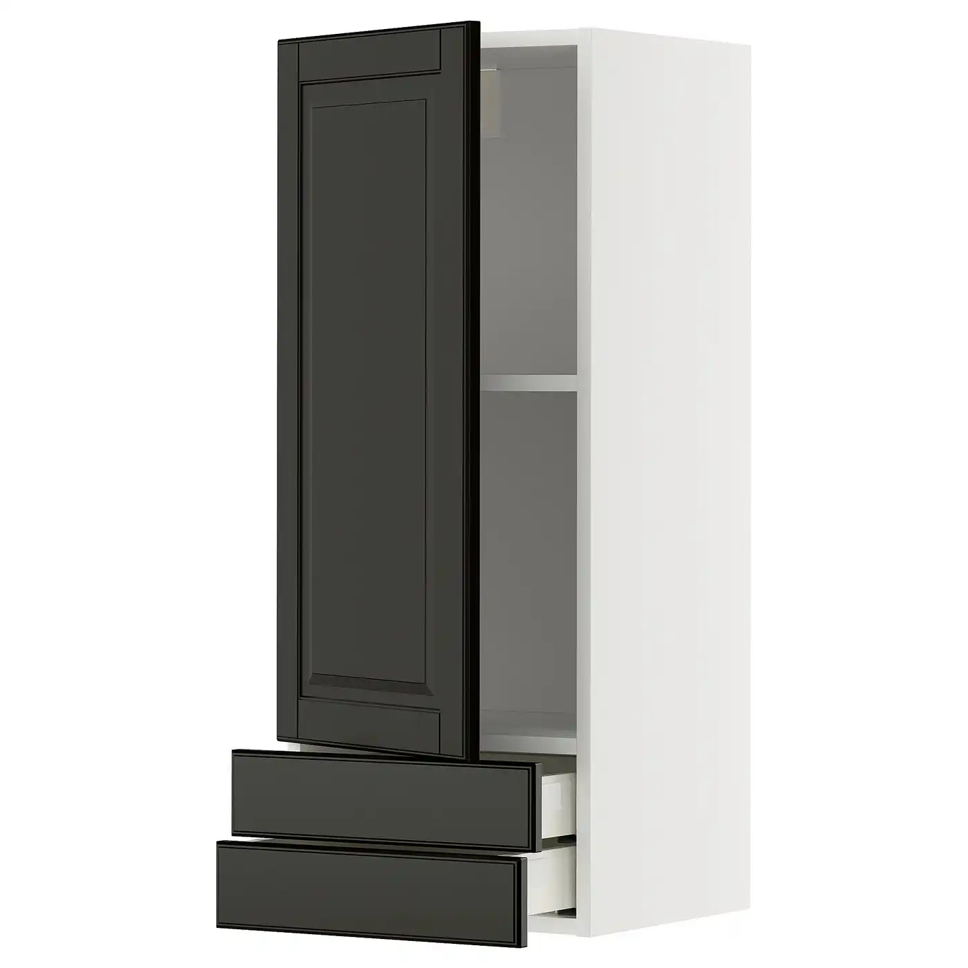 METOD / MAXIMERA Wall cabinet with door/2 drawers - white/Bodbyn black 40x100 cm