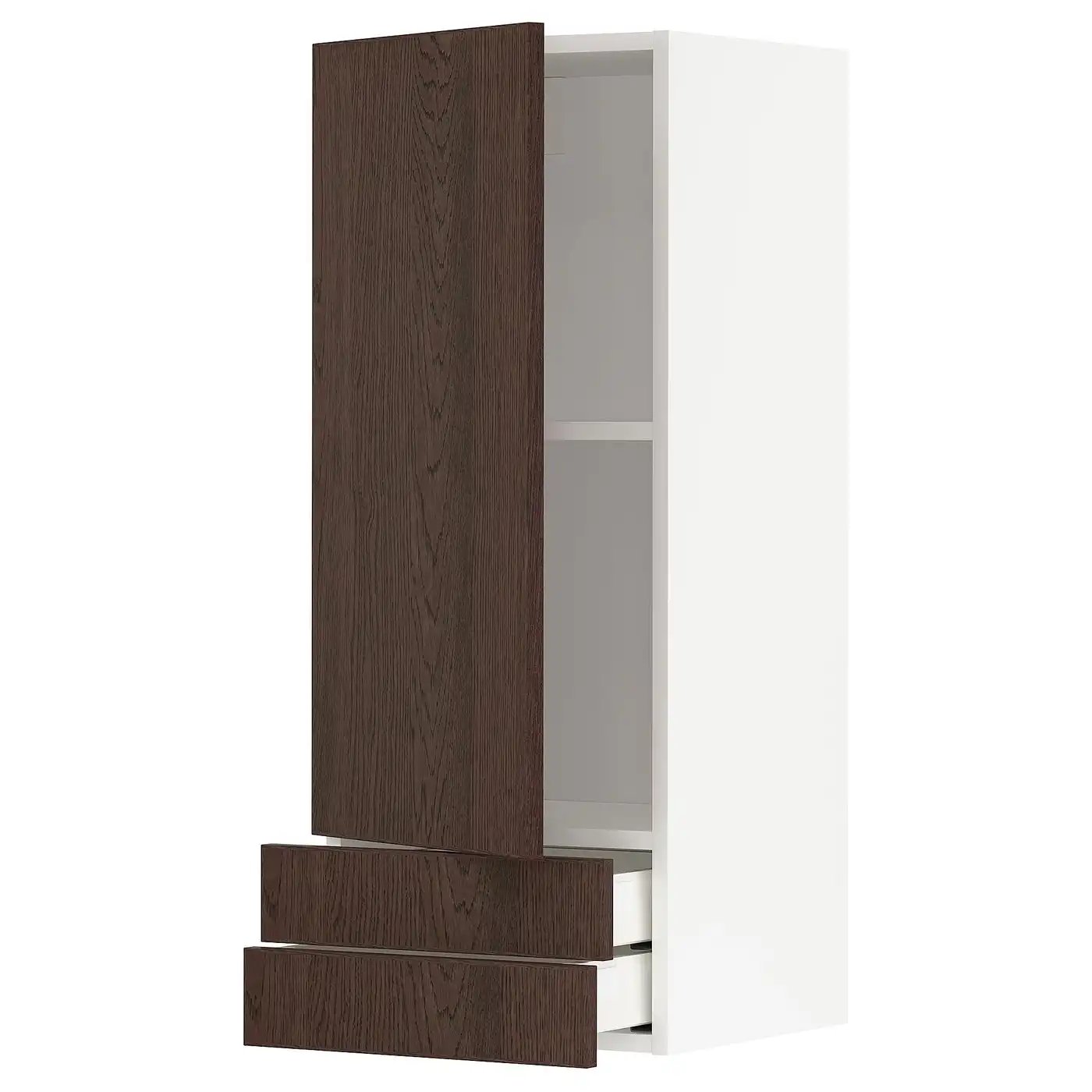 IKEA METOD Wall cabinet with door and 2 drawers 40x100 cm SINARP white/brown