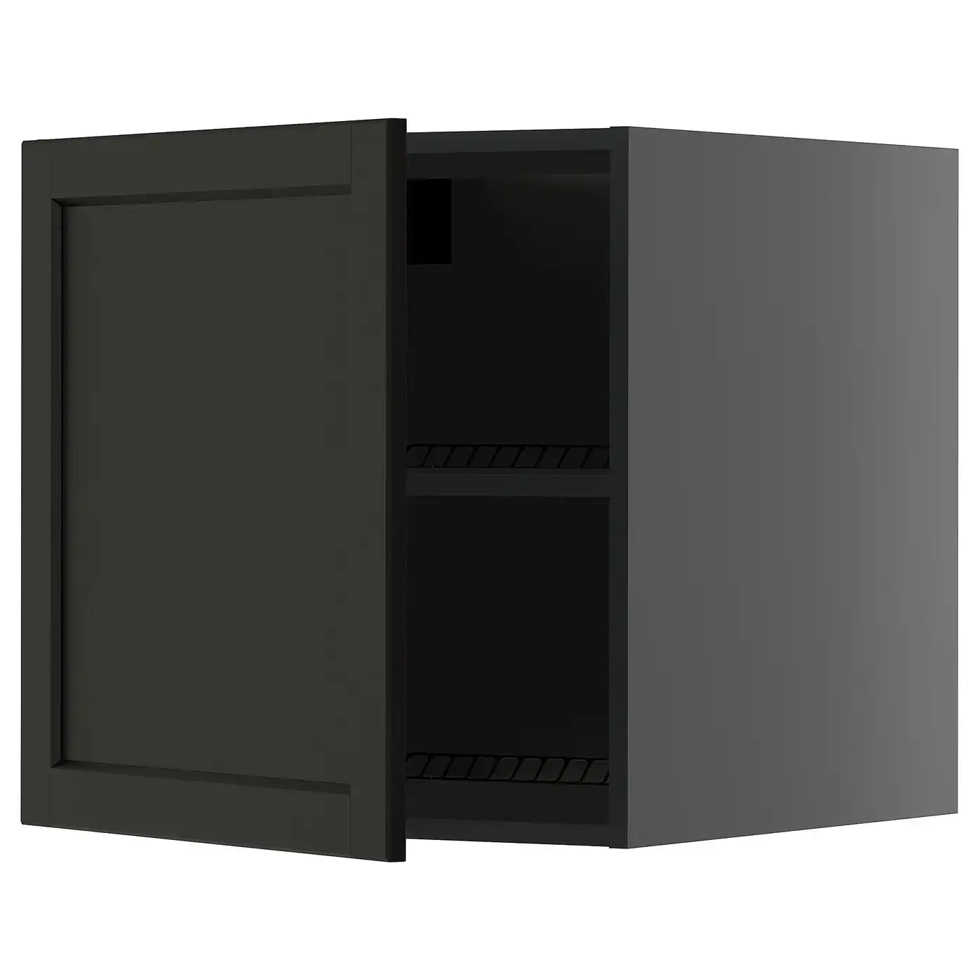 IKEA METOD Top cabinet for fridge/freezer 60x60 cm LERHYTTAN black stained/black-grey