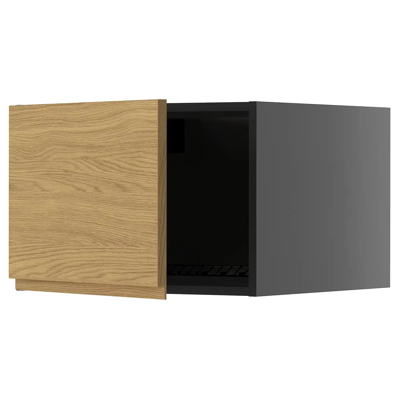IKEA METOD Top cabinet for fridge/freezer 60x40 cm VOXTORP Oak effect/black-grey