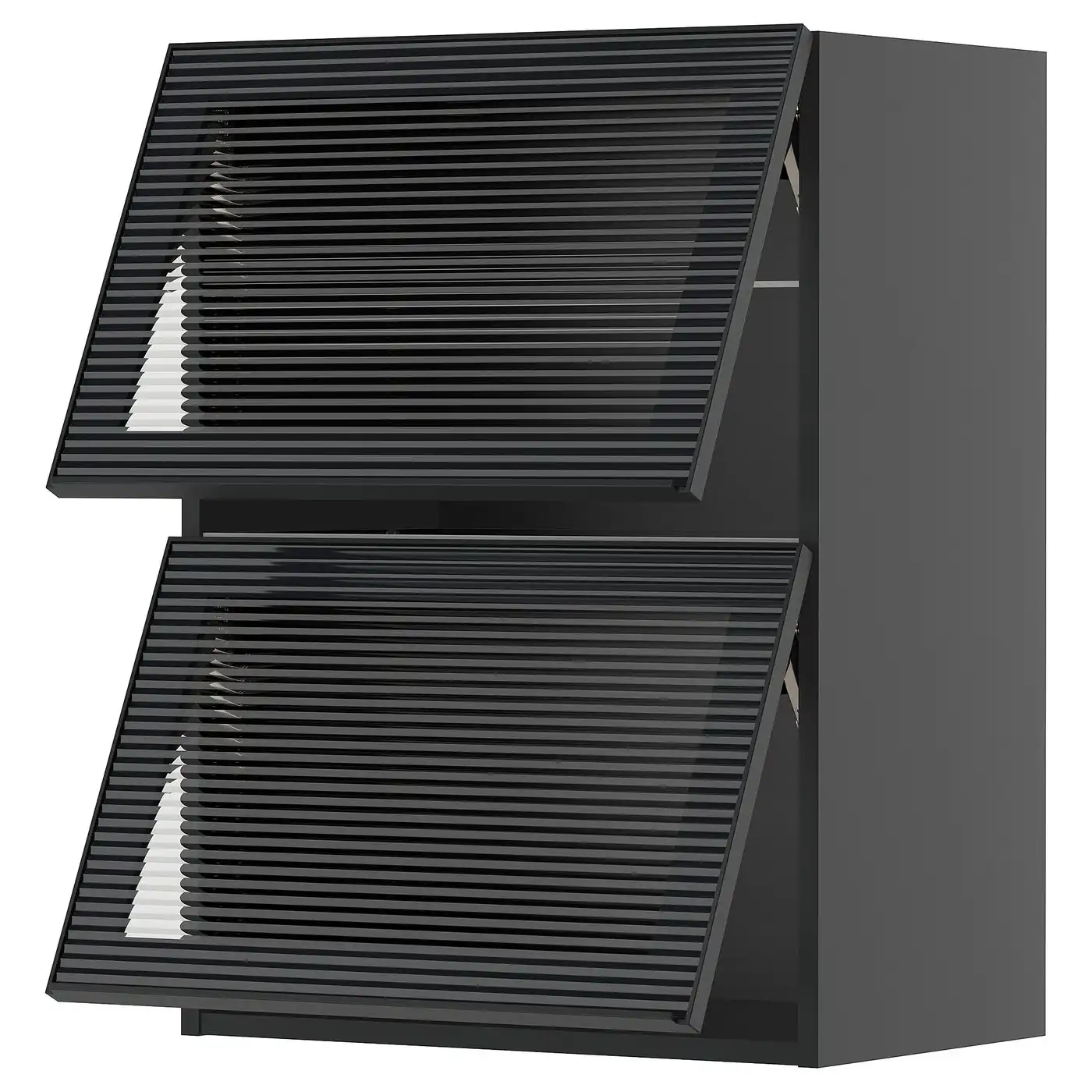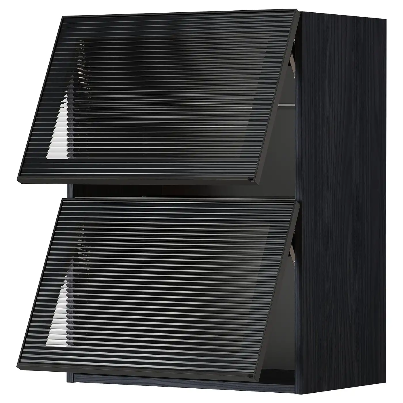 METOD Wall cab horizontal w 2 glass doors - black/Hejsta anthracite reeded glass 60x80 cm