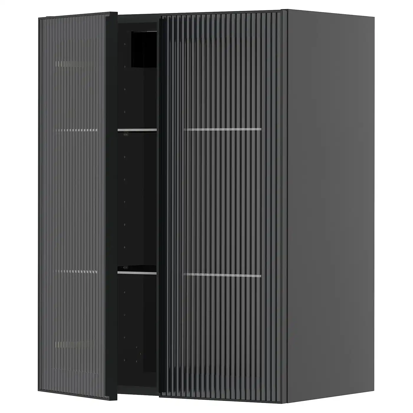 METOD Wall cabinet w shelves/2 glass drs - black-grey/Hejsta anthracite reeded glass 60x80 cm