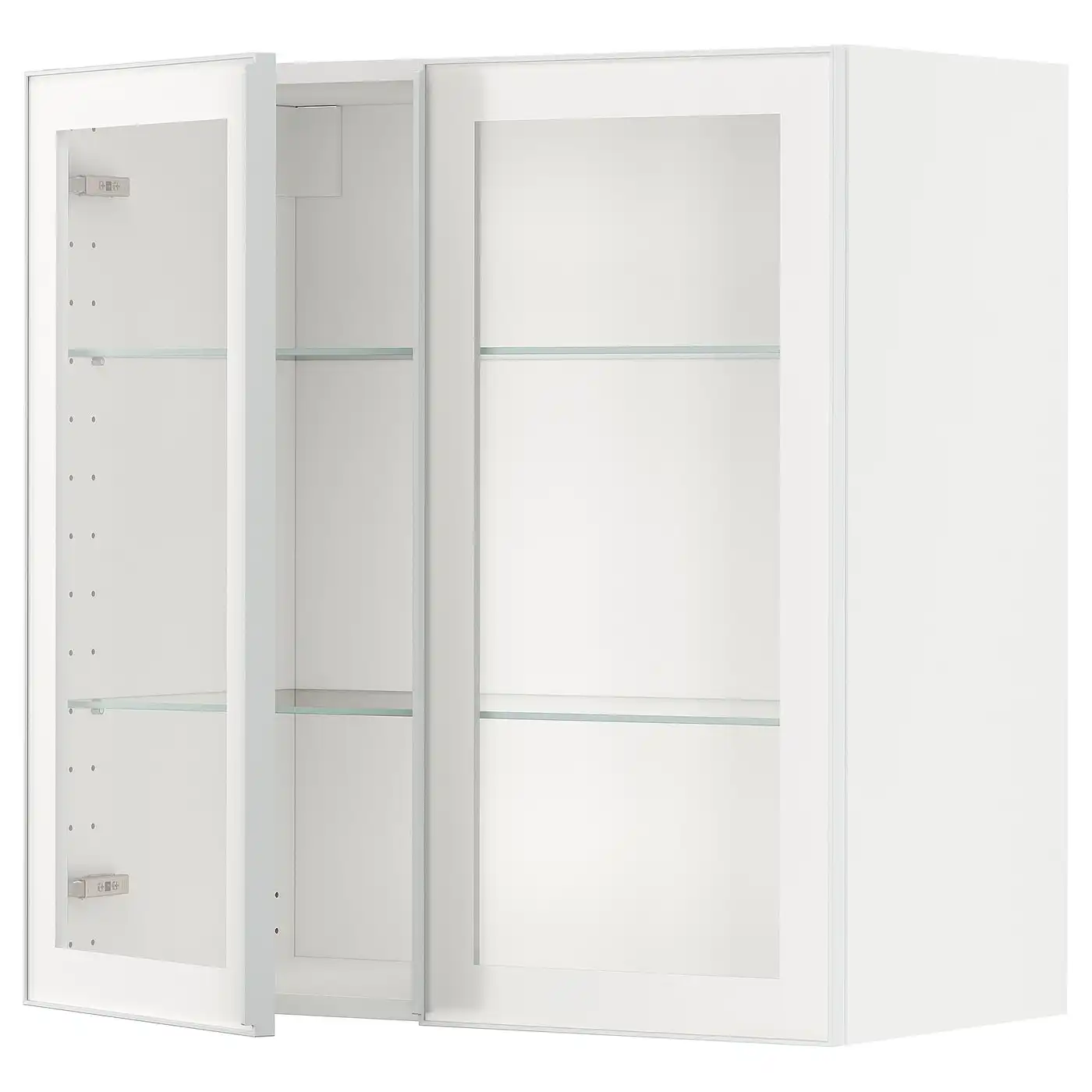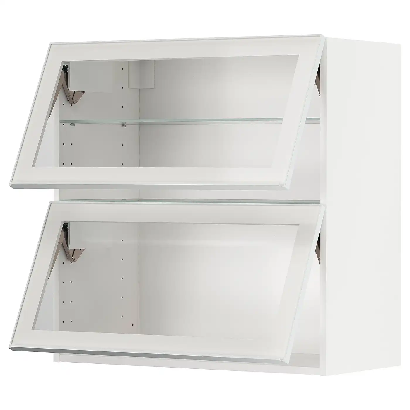METOD Wall cab horizontal w 2 glass doors - white/Hejsta white clear glass 80x80 cm