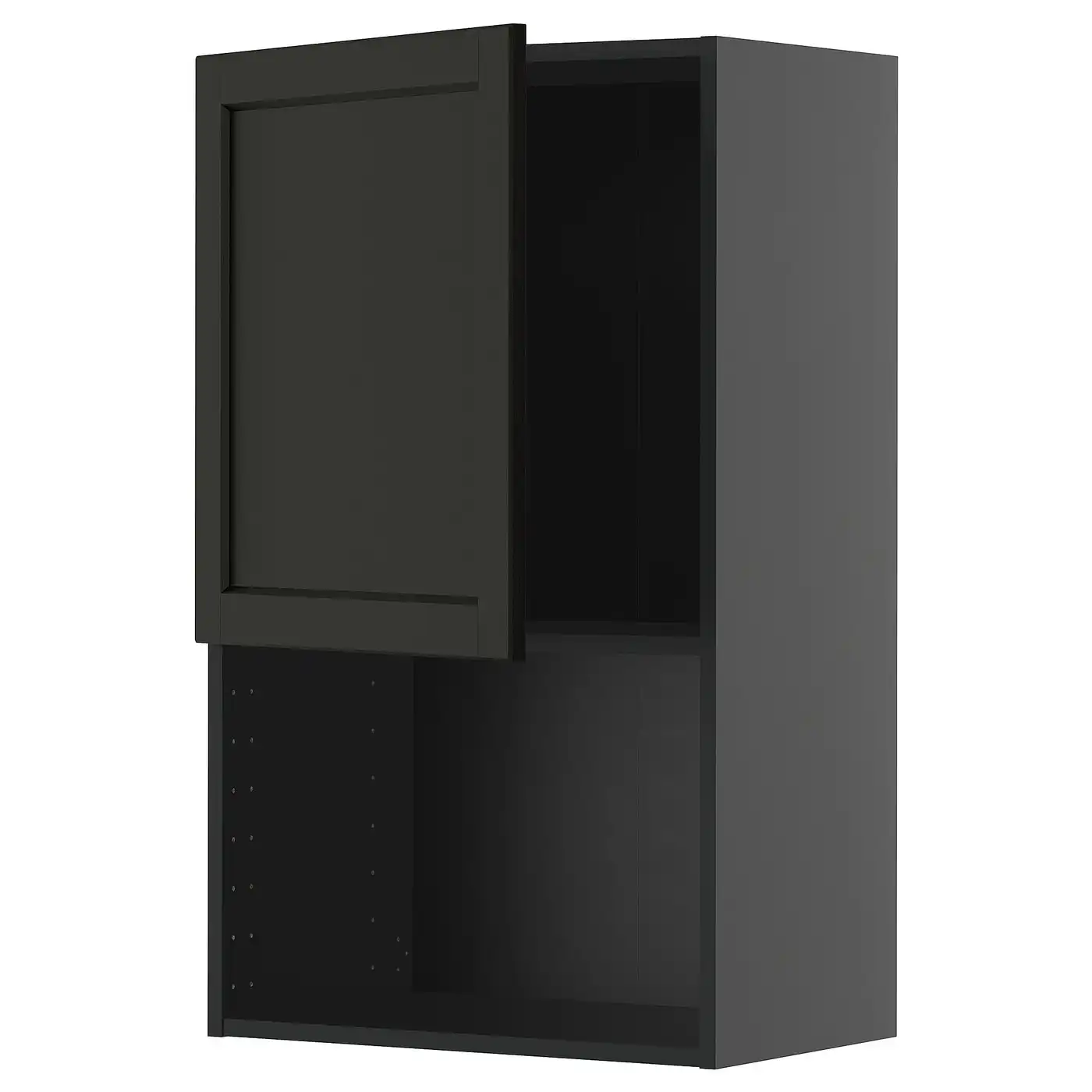 METOD Wall cabinet for microwave oven - black-grey/Lerhyttan black stained 60x100 cm