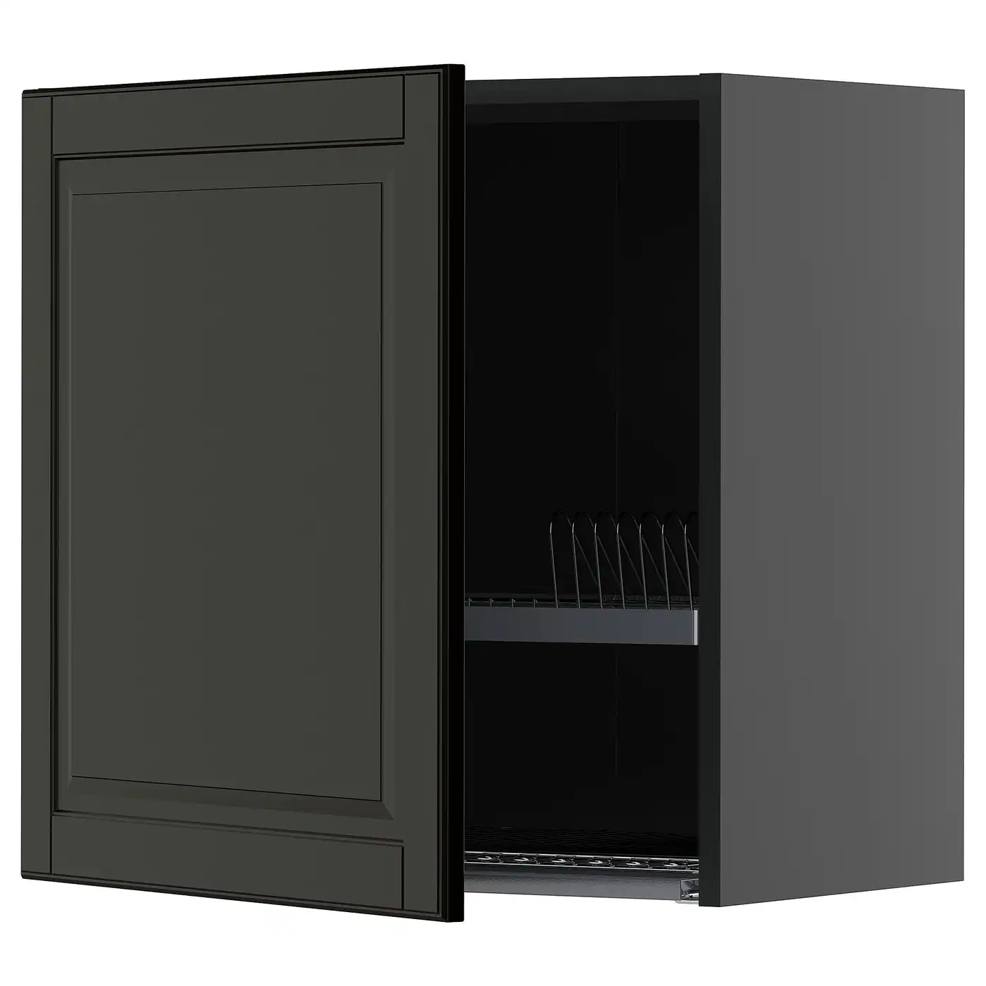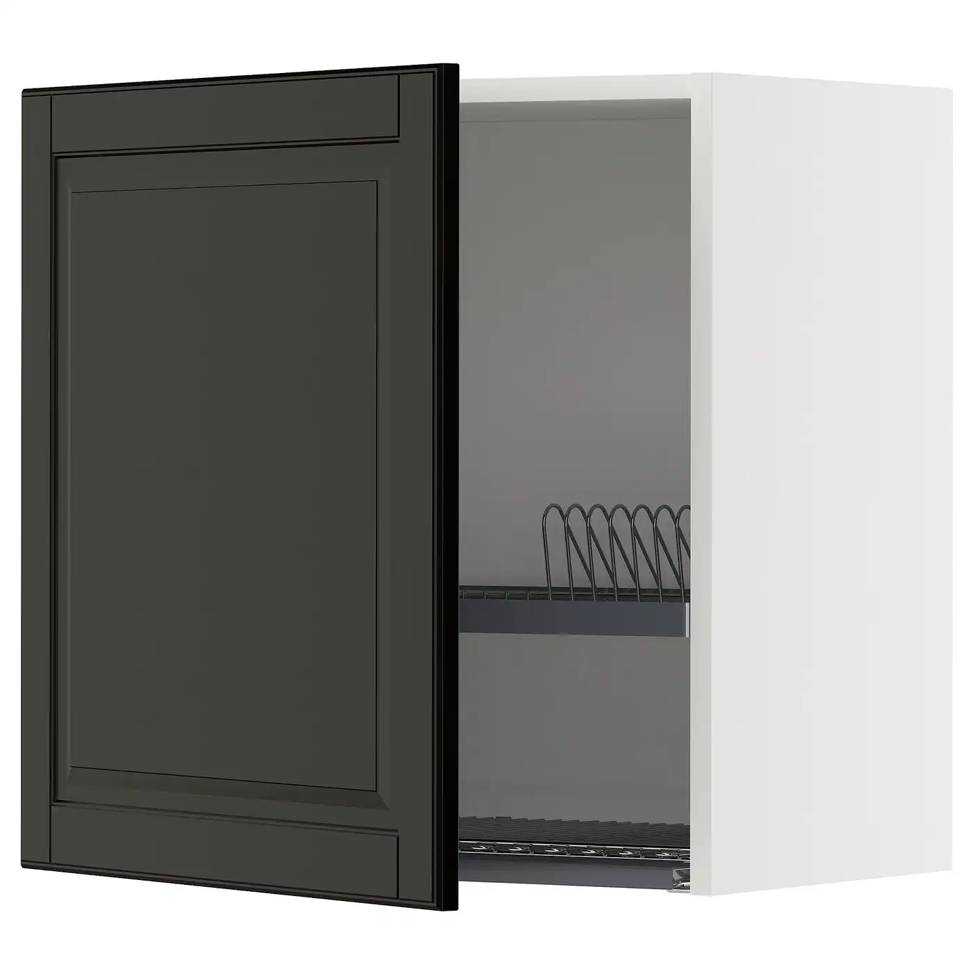 METOD Wall cabinet with dish drainer - black-grey/Bodbyn black 60x60 cm