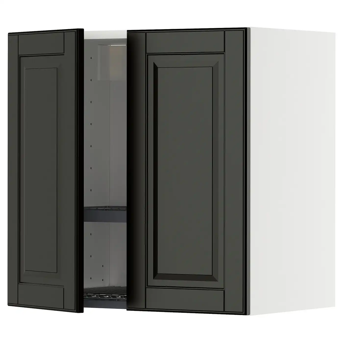 METOD Wall cabinet w dish drainer/2 doors - white/Bodbyn black 60x60 cm