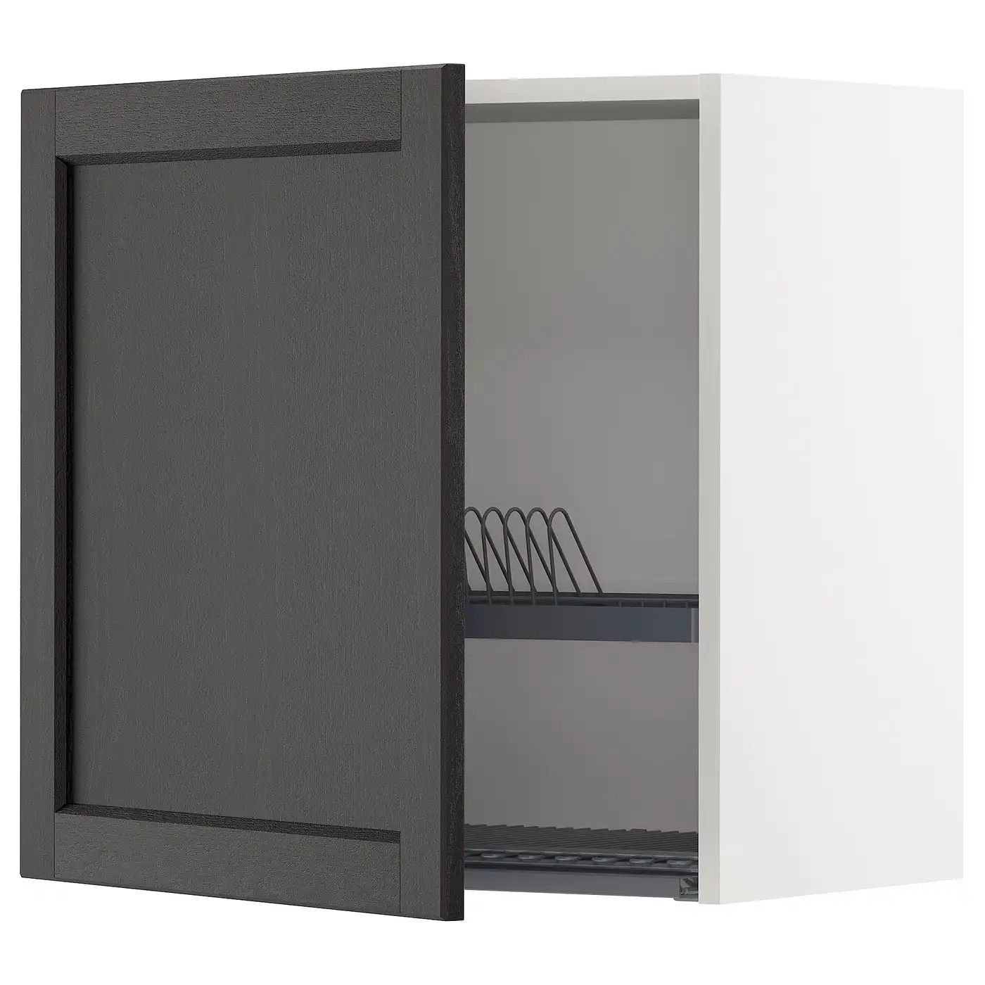 METOD Wall cabinet with dish drainer - white/Lerhyttan black stained 60x60 cm